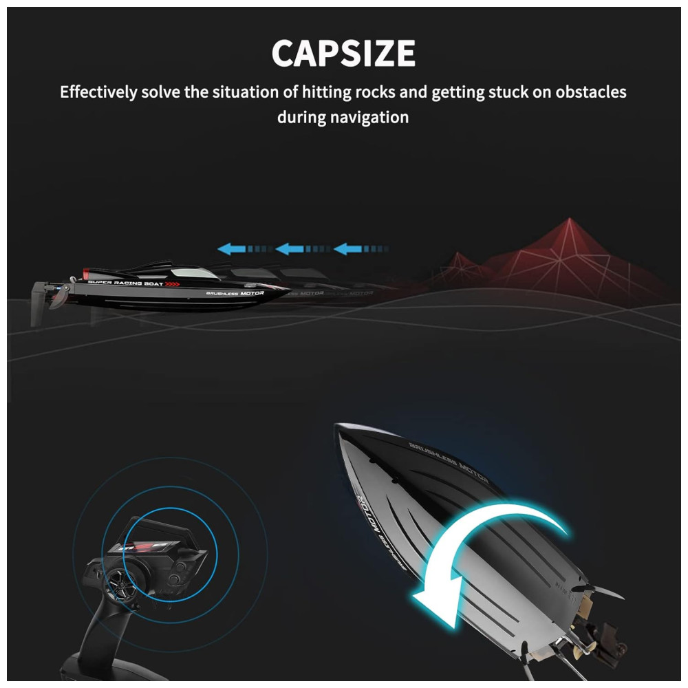 Este barco de controle remoto é equipado com funções avançadas, permitindo avançar, retroceder, virar à esquerda e à direita. Com luzes de navegação, ajuste de volume do leme (grande e pequeno), ajuste fino da direção, recuperação de capotamento e um sistema eletrônico de refrigeração a água, ele oferece uma experiência de uso completa.