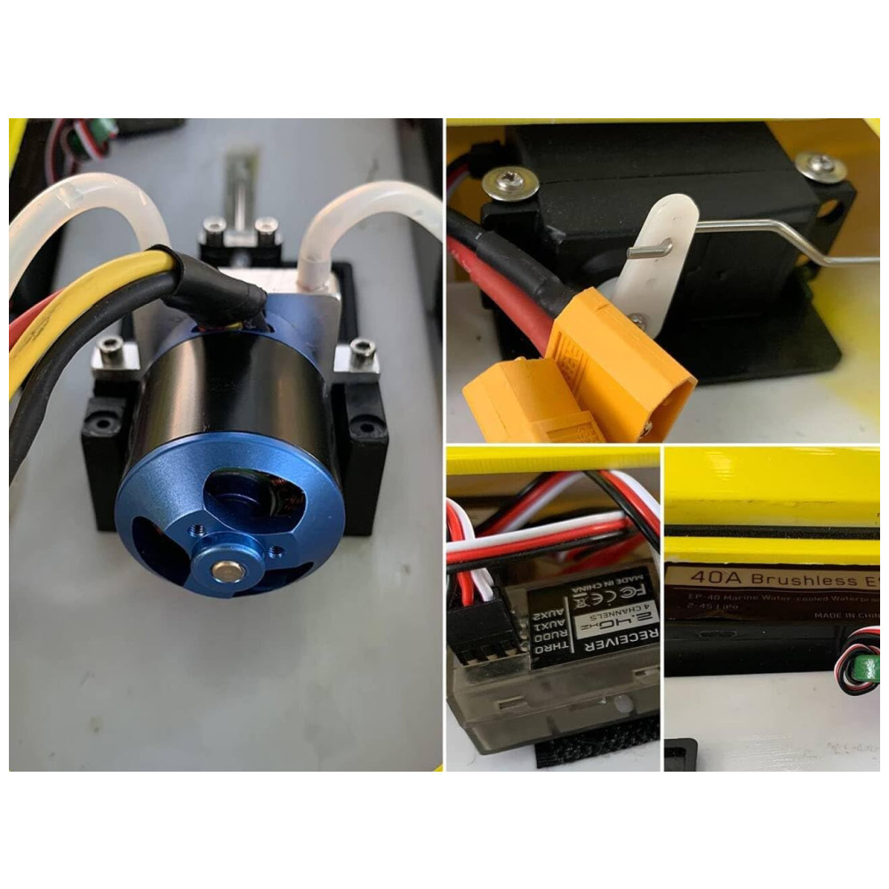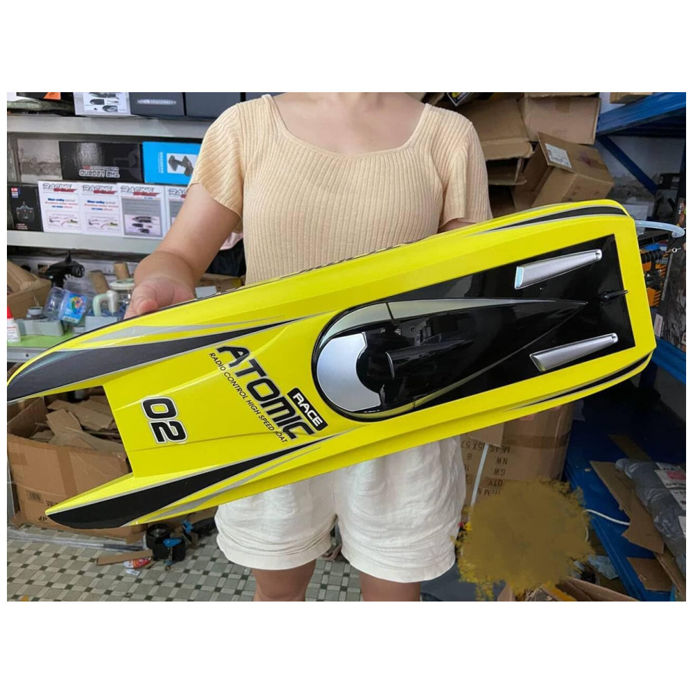 Com um casco extra longo de 70,1 cm, o barco conta com um sistema de resfriamento automático a água e inversão automática, proporcionando uma operação suave. O modelo opera em uma distância de controle de até 300 metros e vem com uma bateria de alta capacidade de 11,1V 2600mAh. O design simplificado do casco reduz significativamente a resistência à água, melhorando ainda mais a performance.