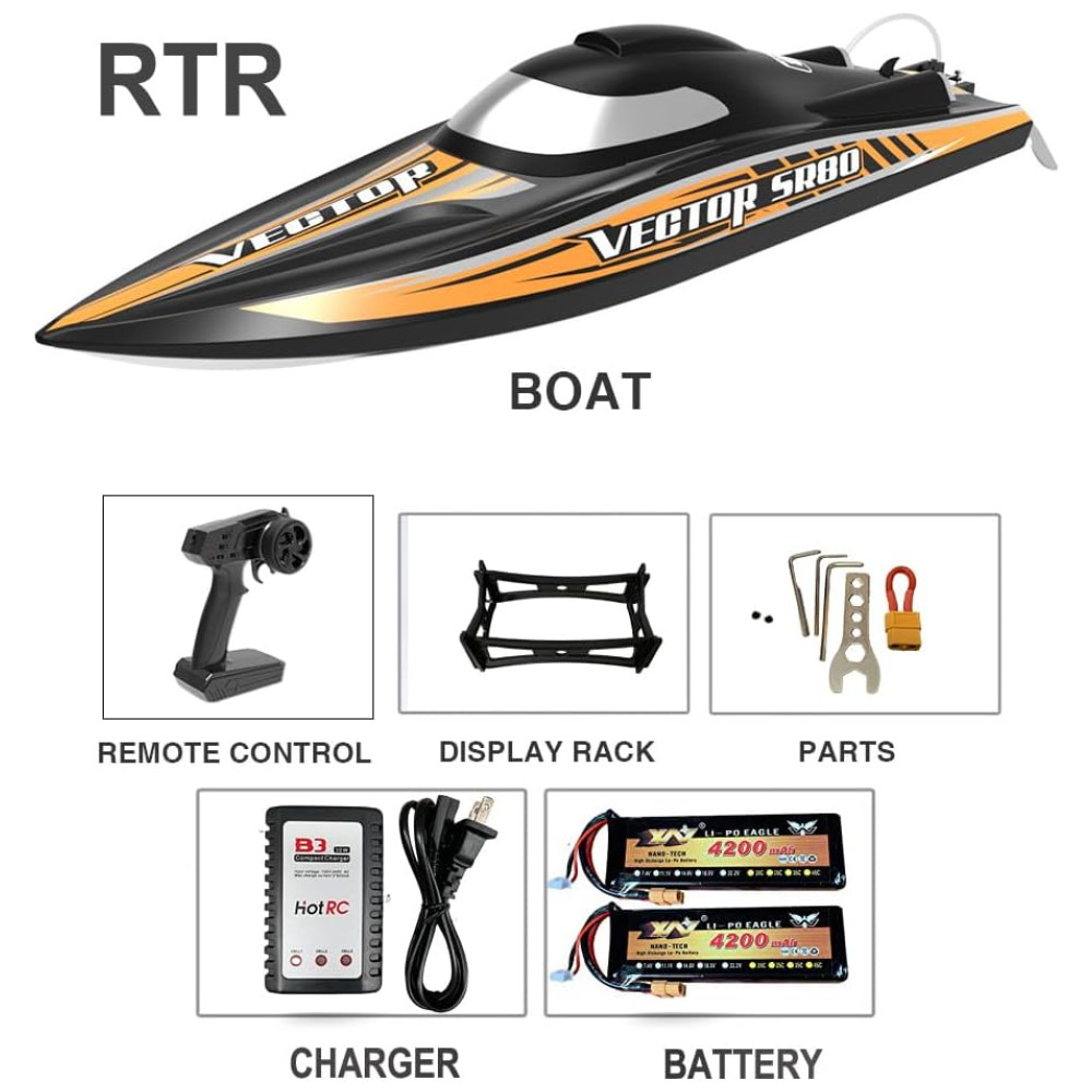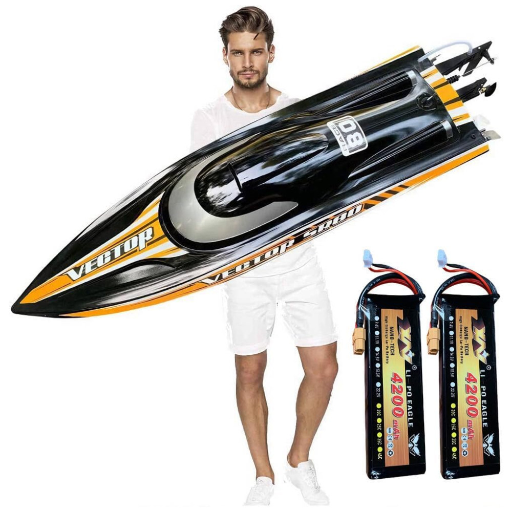 Barco de Controle Remoto para Adultos com Velocidade Máxima de 70 km/h Alcance de 200 Metros e Motor Sem Escova SOWOFA Preto e Laranja