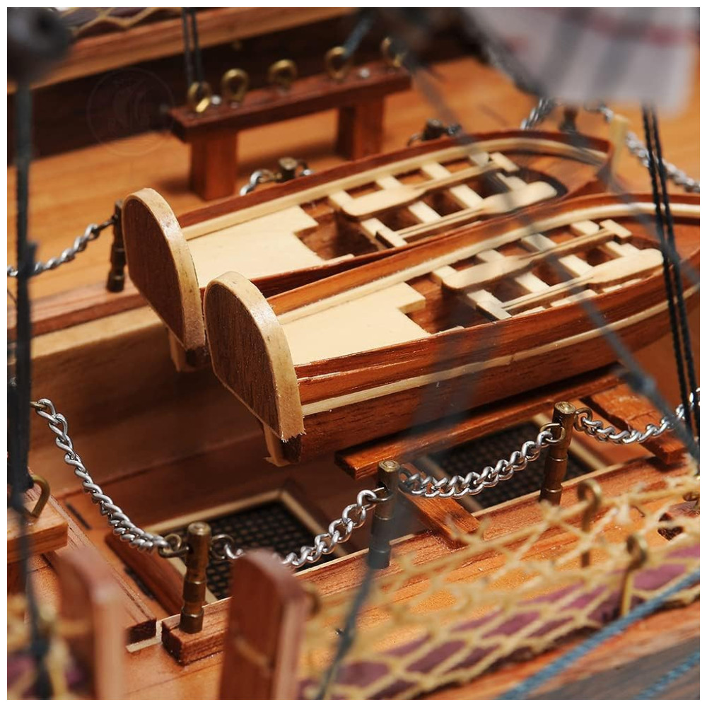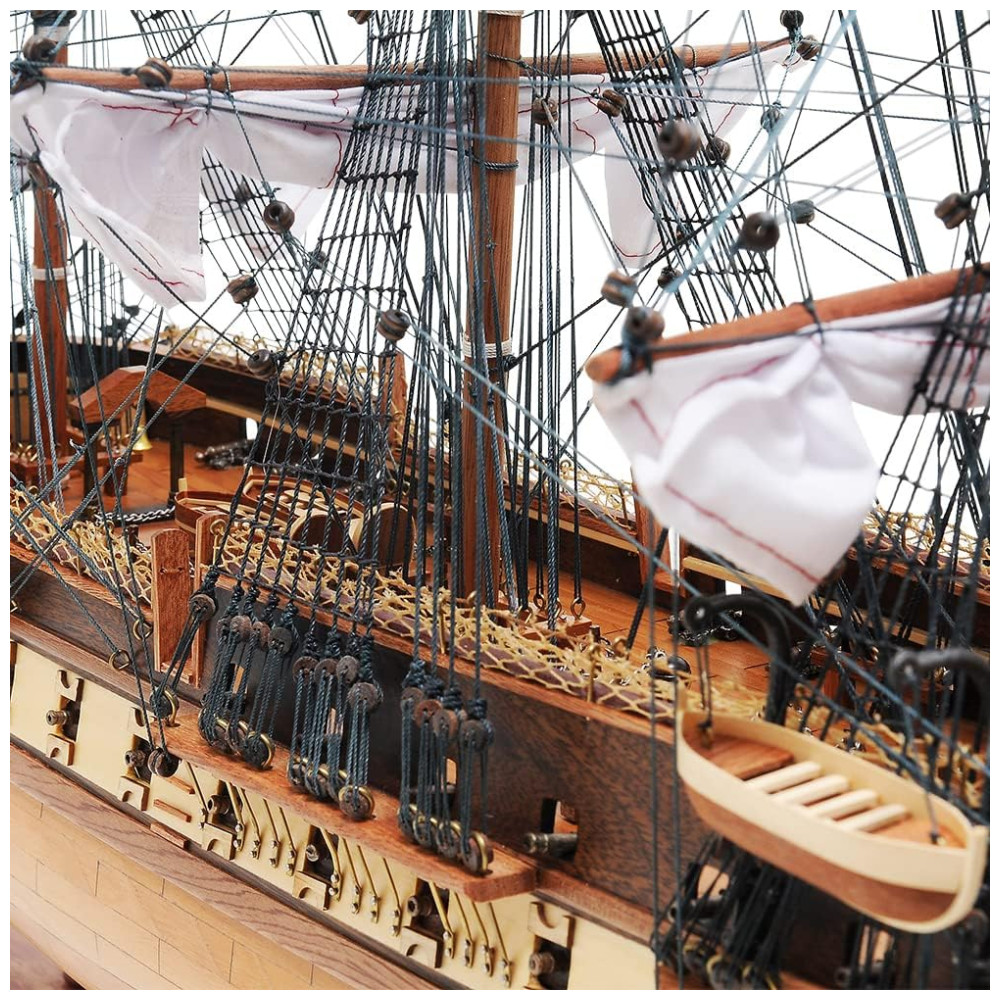 Montagem fácil em minutos é garantida pelos componentes removíveis projetados para transporte seguro. Este modelo é não apenas um testemunho vívido da história naval, mas também um presente ideal para entusiastas de história e admiradores de artesanato meticuloso, combinando significado histórico com arte requintada. Nossos mestres artesãos constroem réplicas em escala de várias embarcações, usando métodos tradicionais e modernos, desde veleiros a navios de cruzeiro.