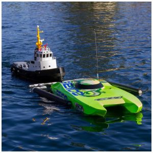 Equipado com um motor tamanho 700 e um ESC de 40 ampères, capaz de suportar até 3S LiPo, este barco pode ser usado como um rebocador em escala ou transformado em um motor de barco com braços removíveis, permitindo a recuperação de embarcações de corrida de até 121 cm. O Horizon também possui encanamento para canhões de água, que podem ser ativados com a adição de uma bomba alimentada pelo receptor.