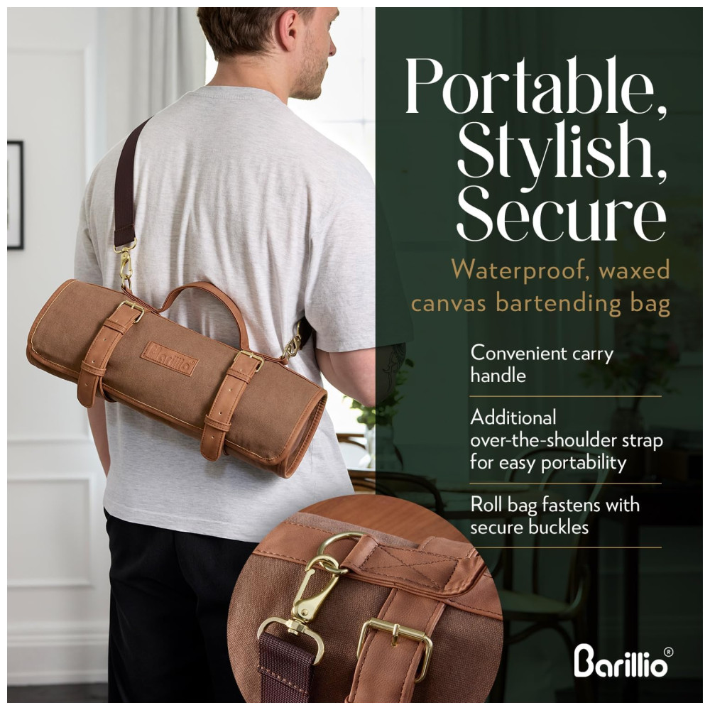 Leve seu kit de bn com estilo A sacola do kit de bn de lona encerada da Barillio fornece o zenamento, organização e portabilidade necessários para implementar com sucesso suas habilidades de bartender. Os bolsos, presilhas e alças elásticas especialmente concebidas tornam o transporte das suas ferramentas de bar em viagem o mais fácil possível. E para finalizar, este kit de bartender vem com todo o equipamento de bartending de que você precisa para preparar deliciosos coquetéis sem confusão ou bagunça.