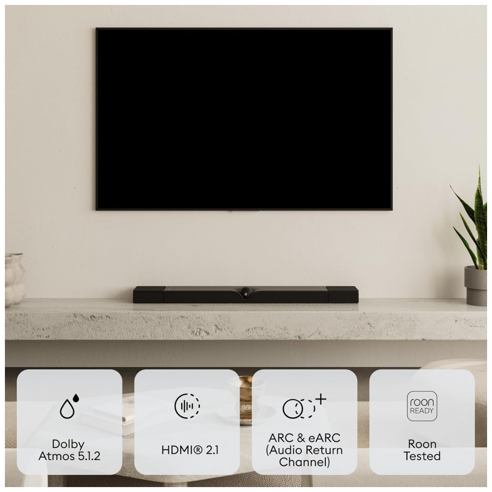 Compatibilidade de dispositivos: Televisores, projetores, smartphones, tablets, computadores e players de mídia com HDMI eARC, óptico ou streaming de rede