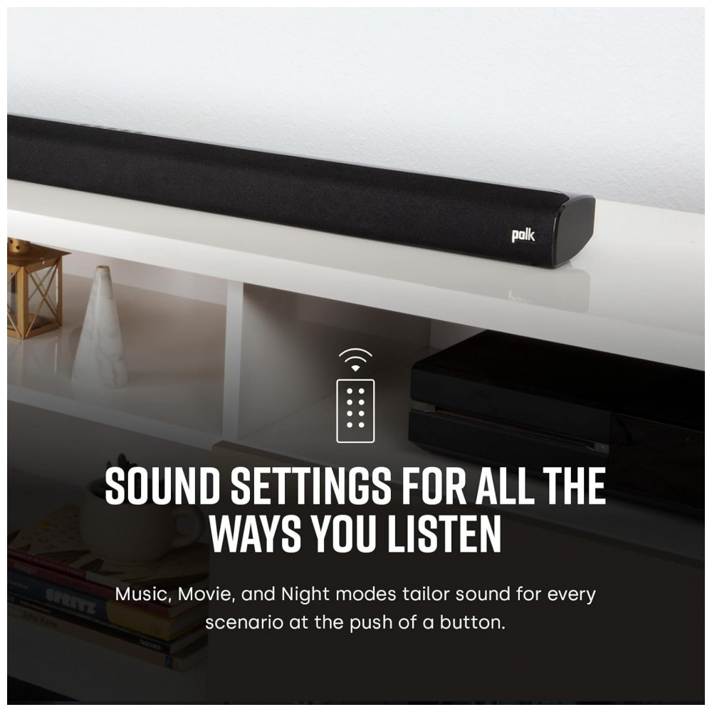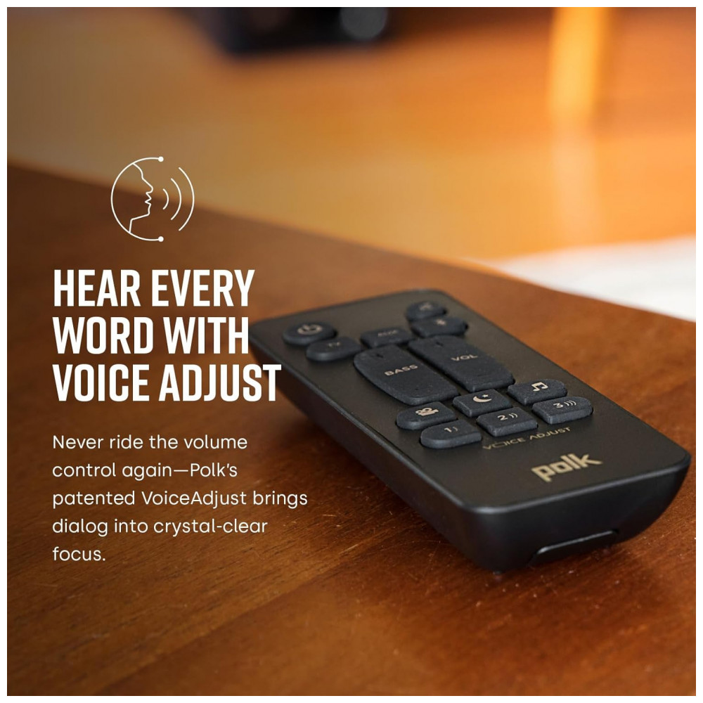 A tecnologia VoiceAdjust da Polk permite realçar a clareza dos diálogos sem comprometer a trilha sonora como um todo. O sistema decodifica Dolby Digital, oferece conexão HDMI ARC, entrada óptica e entrada analógica, e permite streaming de áudio sem fio via Bluetooth a partir de smartphones, tablets e outros dispositivos compatíveis.