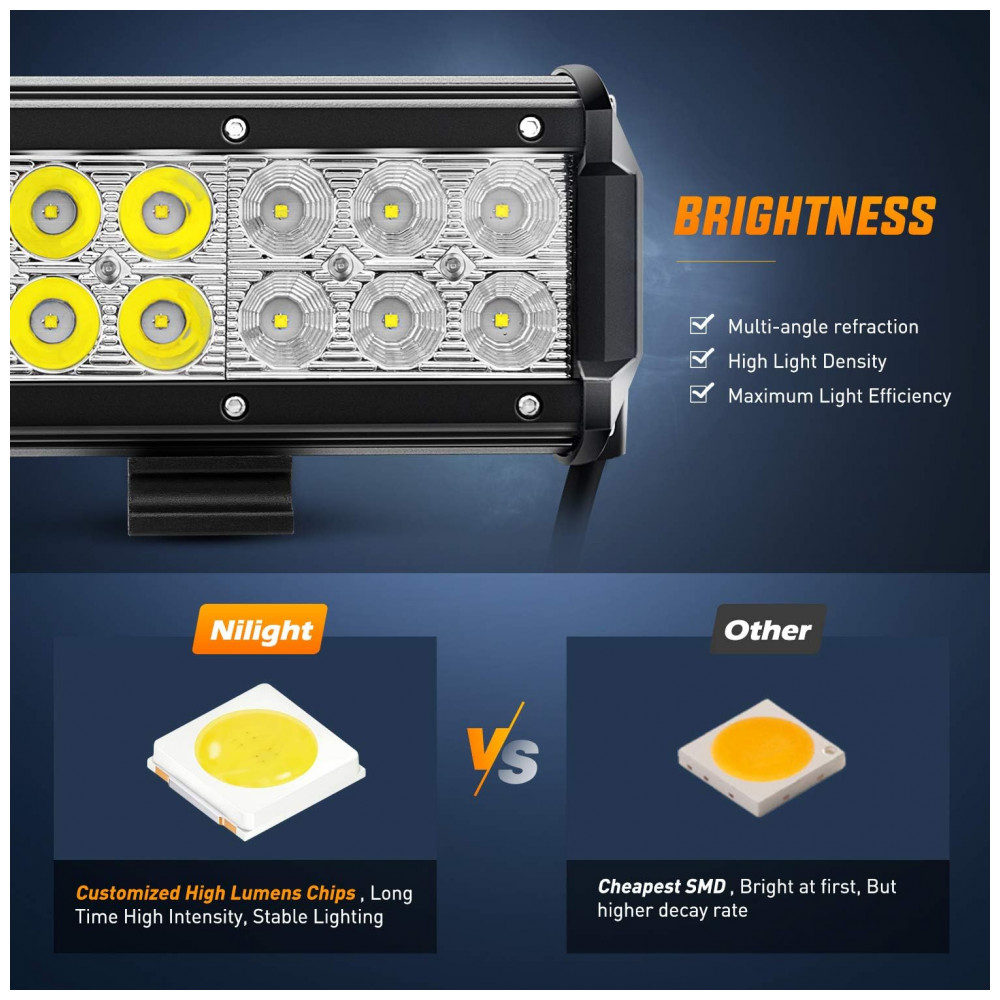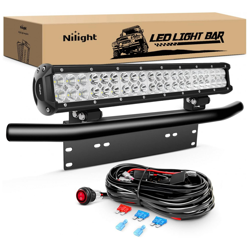Barra LED Off Road Luz Branca para Caminhões SUV ATV E UTV IP67 12V 24V 126W 2Un Nilight Preto
