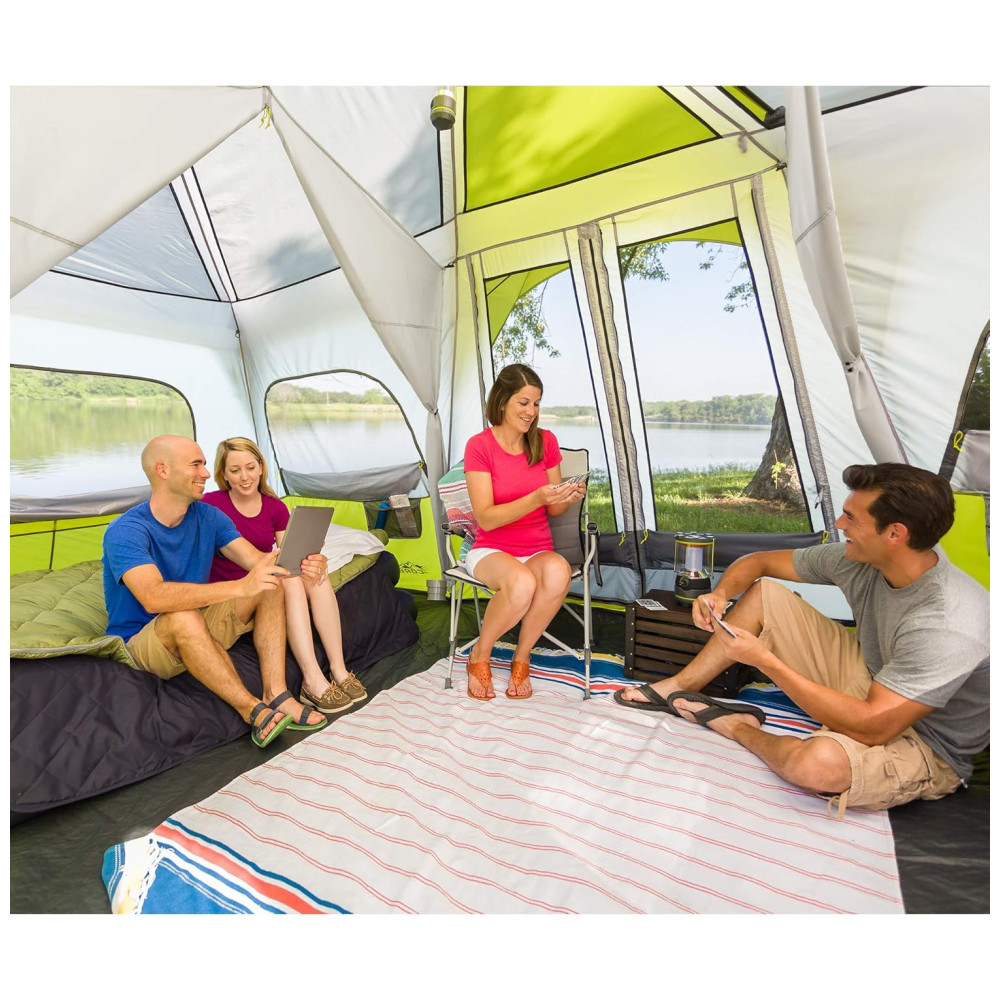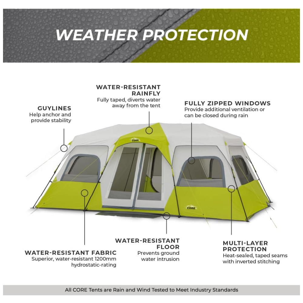 CONFORTÁVEL O rainfly repelente de água é removível em climas mais quentes para expor o teto de malha para vistas panorâmicas para observar as estrelas nas noites claras de verão. Além disso, o sistema de ventilação avançado usa a entrada de ar ajustável projetada para atrair o ar frio do solo, enquanto o teto de malha permite que o ar quente escape, mantendo você confortável durante toda a temporada.