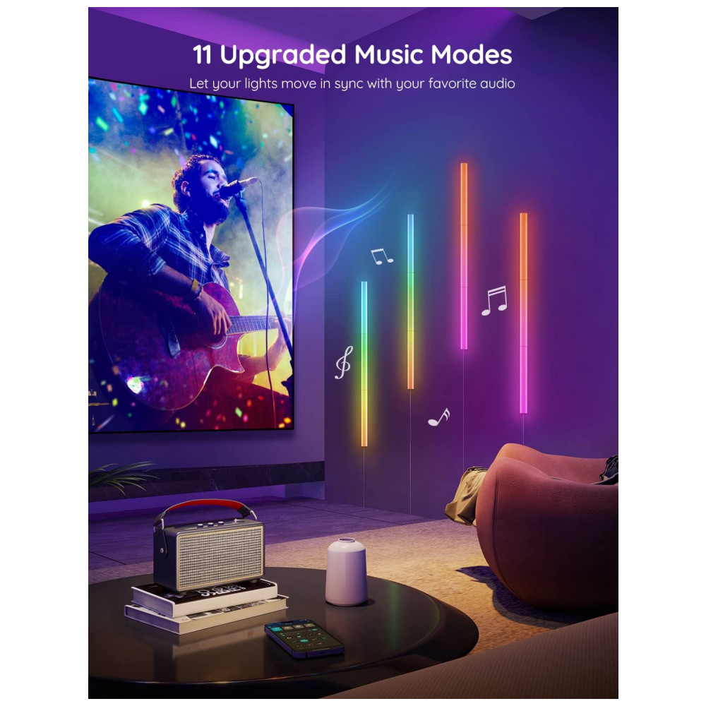 11 modos de música atualizados deixe sua luz de parede LED sincronizar com seu áudio favorito e crie uma experiência de audição imersiva. Escolha entre os 11 modos de música versáteis no Govee Home App para manter a festa.