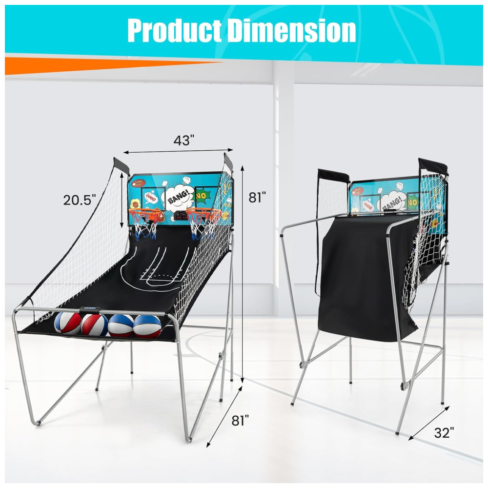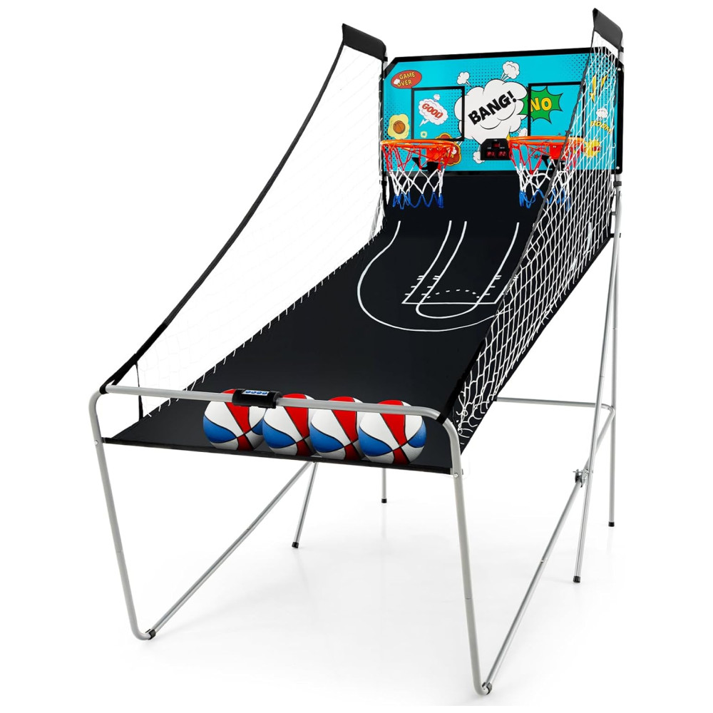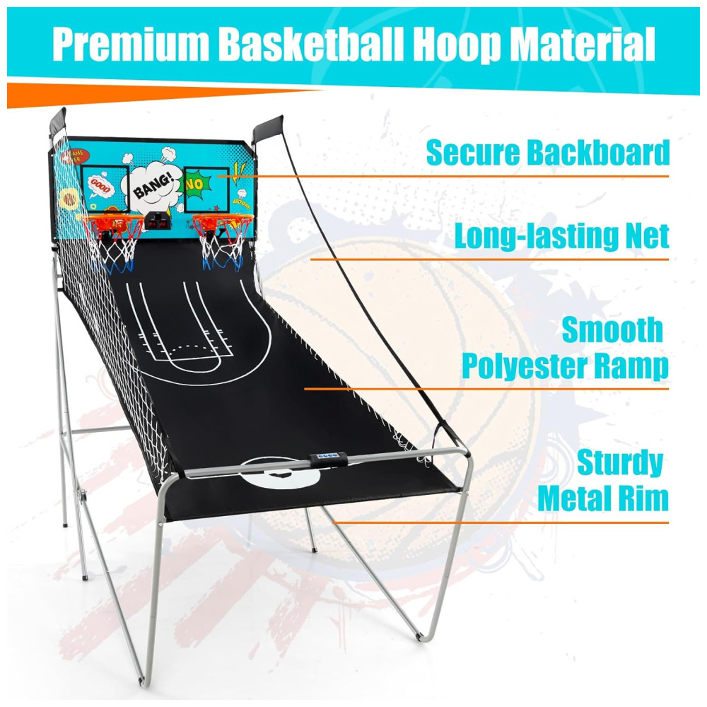Basquete Eletrônico Arcade Dobrável Giantex 8 Opções de Jogo Tiro Duplo Eletrônico para 2 Jogadores com 4 Bolas e Sistema de Placar LED para Crianças e Adultos.