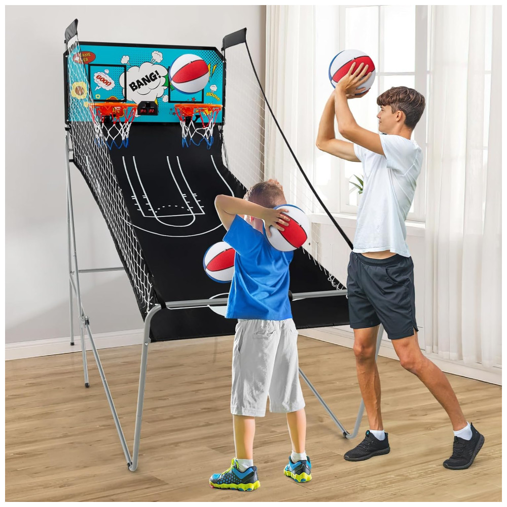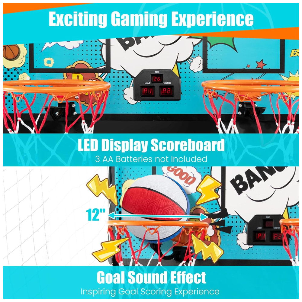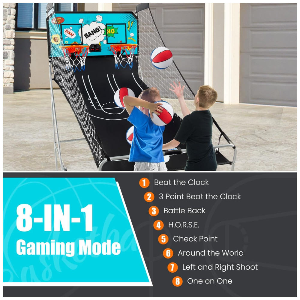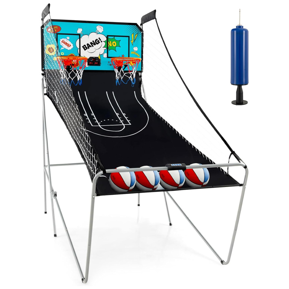 Basquete Eletrônico Arcade Dobrável Giantex 8 Opções de Jogo Tiro Duplo Eletrônico para 2 Jogadores com 4 Bolas e Sistema de Placar LED para Crianças e Adultos.