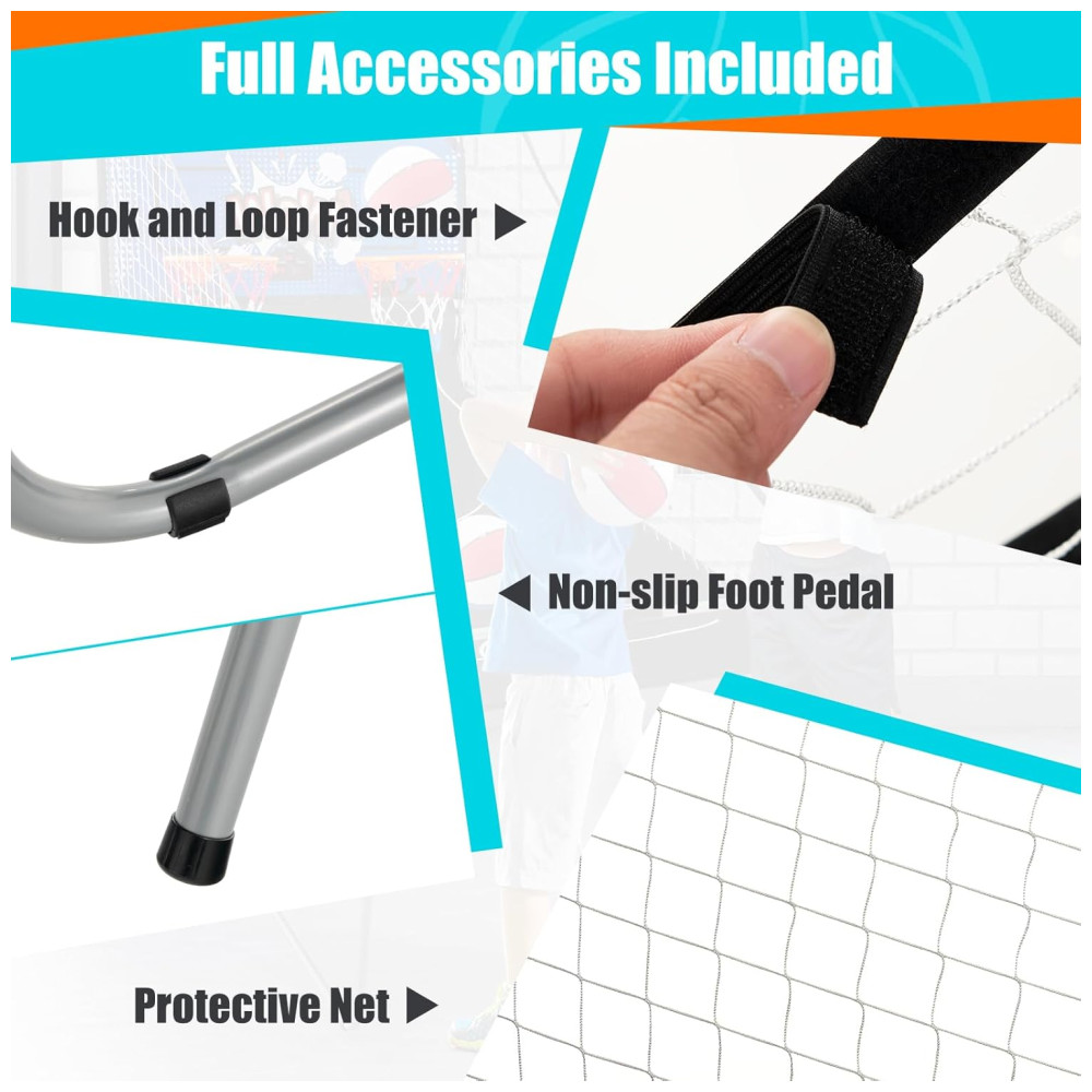 Montagem Fácil e Acessórios Completos: O aro de basquete foi projetado para montagem simples, com manual de instalação claro e fecho de velcro para um processo suave. O conjunto completo inclui quatro bolas de basquete e uma bomba de inflar, proporcionando uma experiência de jogo divertida.