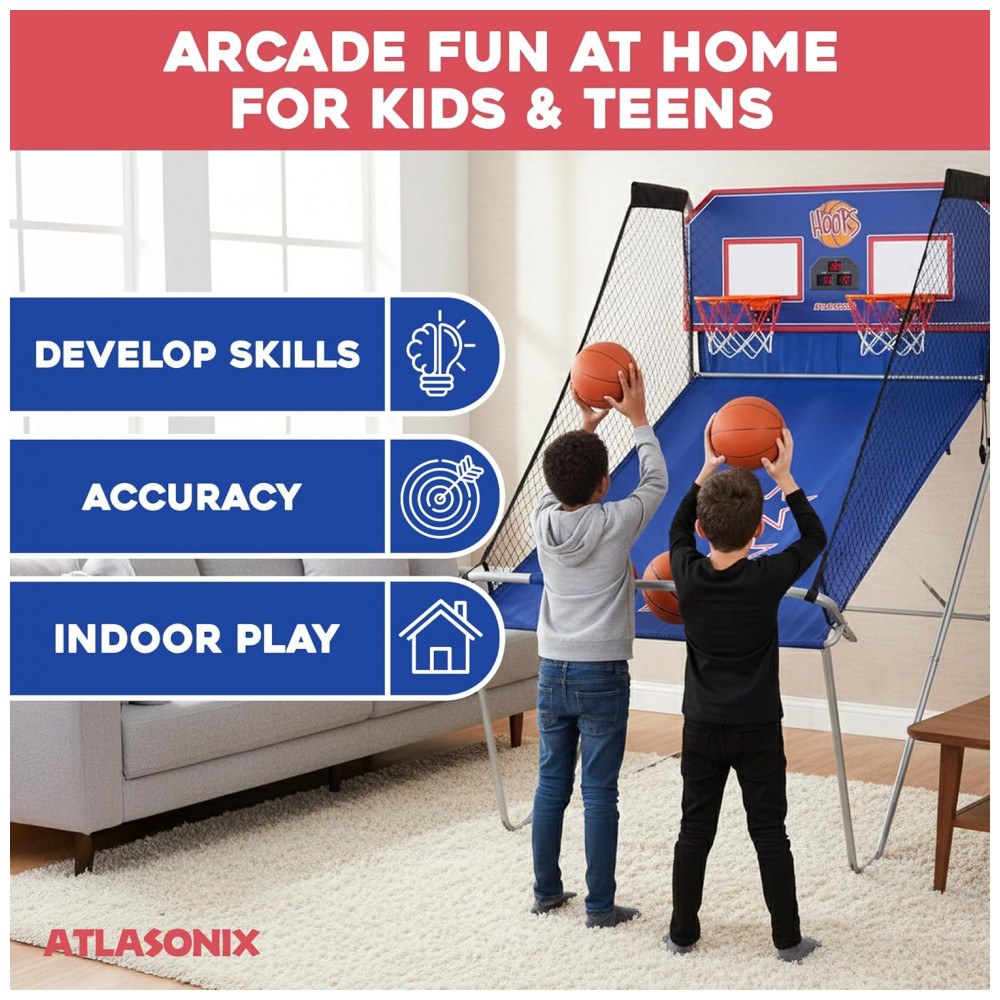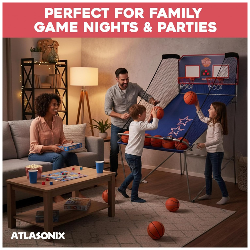 Basquete Eletrônico Duplo para Crianças e Adultos Diversão para Casa Escritório Festa de Aniversário Sistema Eletrônico de PontuaçãoAtlasonix.