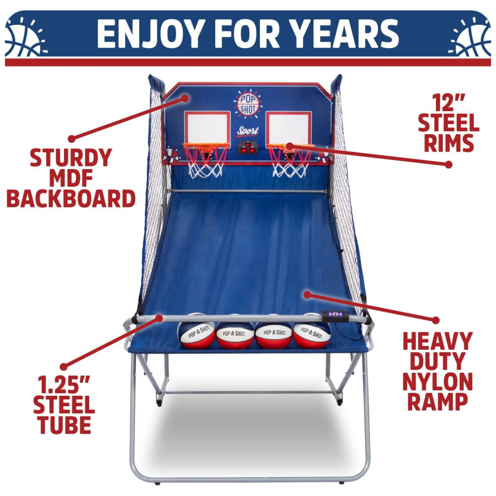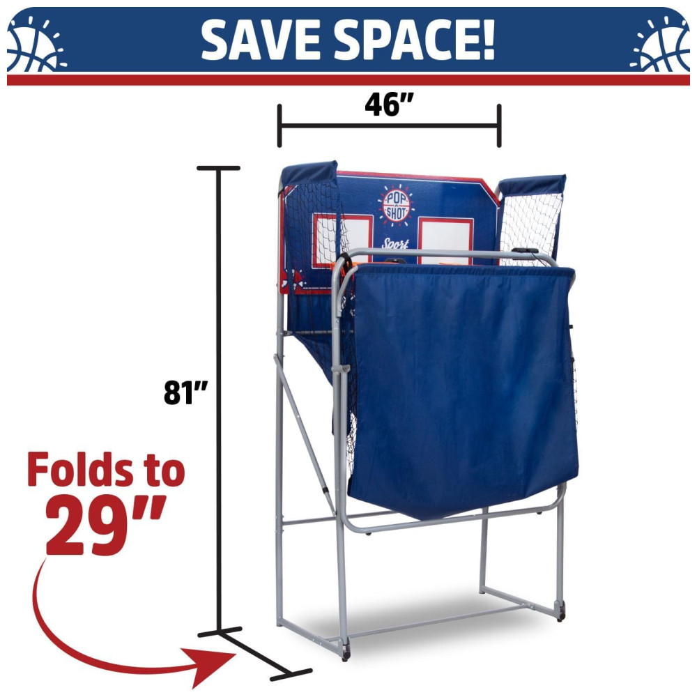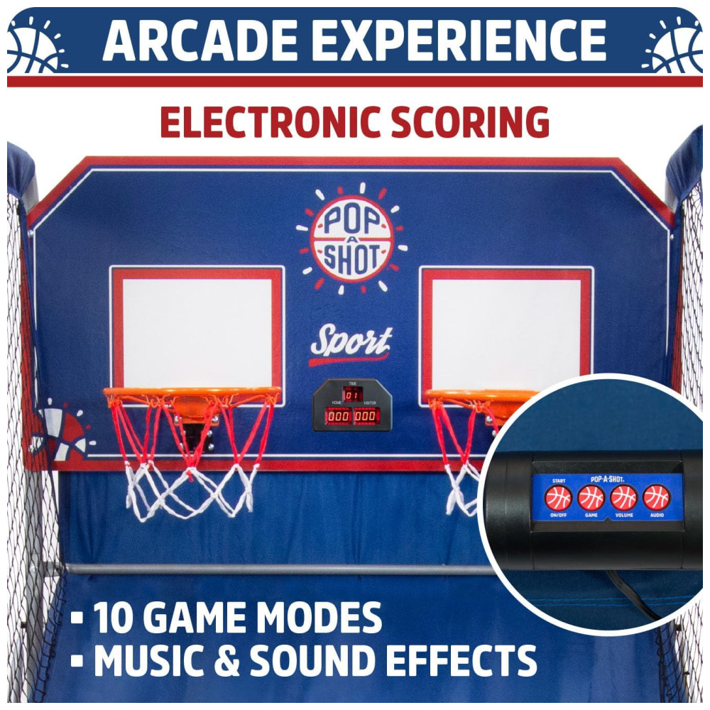 Basquete Eletrônico Pop-A-Shot Arcade Duplo Diversão em Casa Pontuação com Paddle 10 Modos de Jogo 4 Bolas Armazenamento Dobrável.