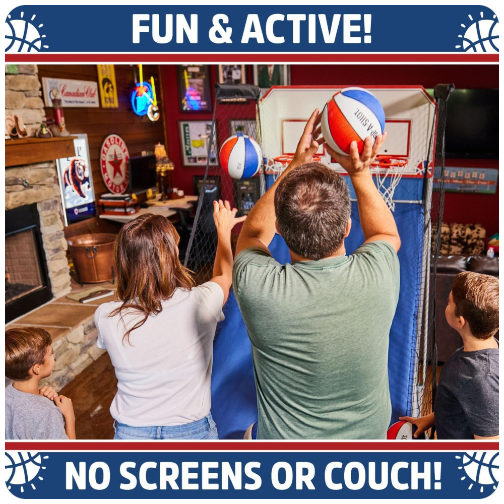 A experiência de jogo foi aperfeiçoada desde 1981. O rastreamento de pontuação é quase 100% preciso graças aos sensores infravermelhos exclusivos. São 7 bolas de basquete e 16 modos de jogo diferentes. Possui um placar grande de 3 dígitos, 6 opções de áudio, funciona com energia AC ou pilhas AA, e o melhor locutor do lado do Mississippi.