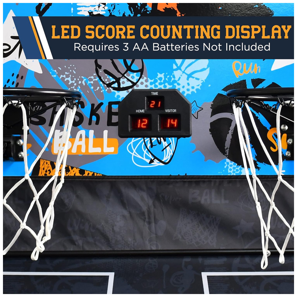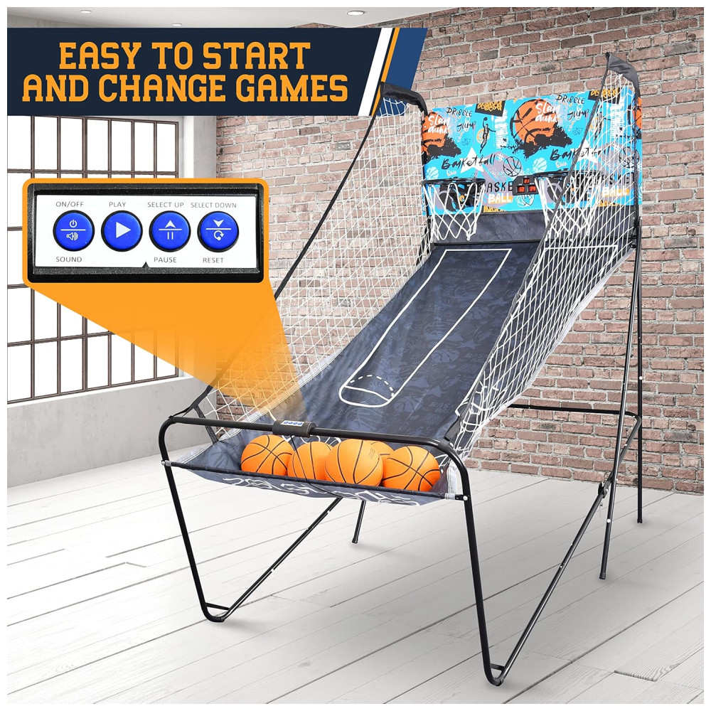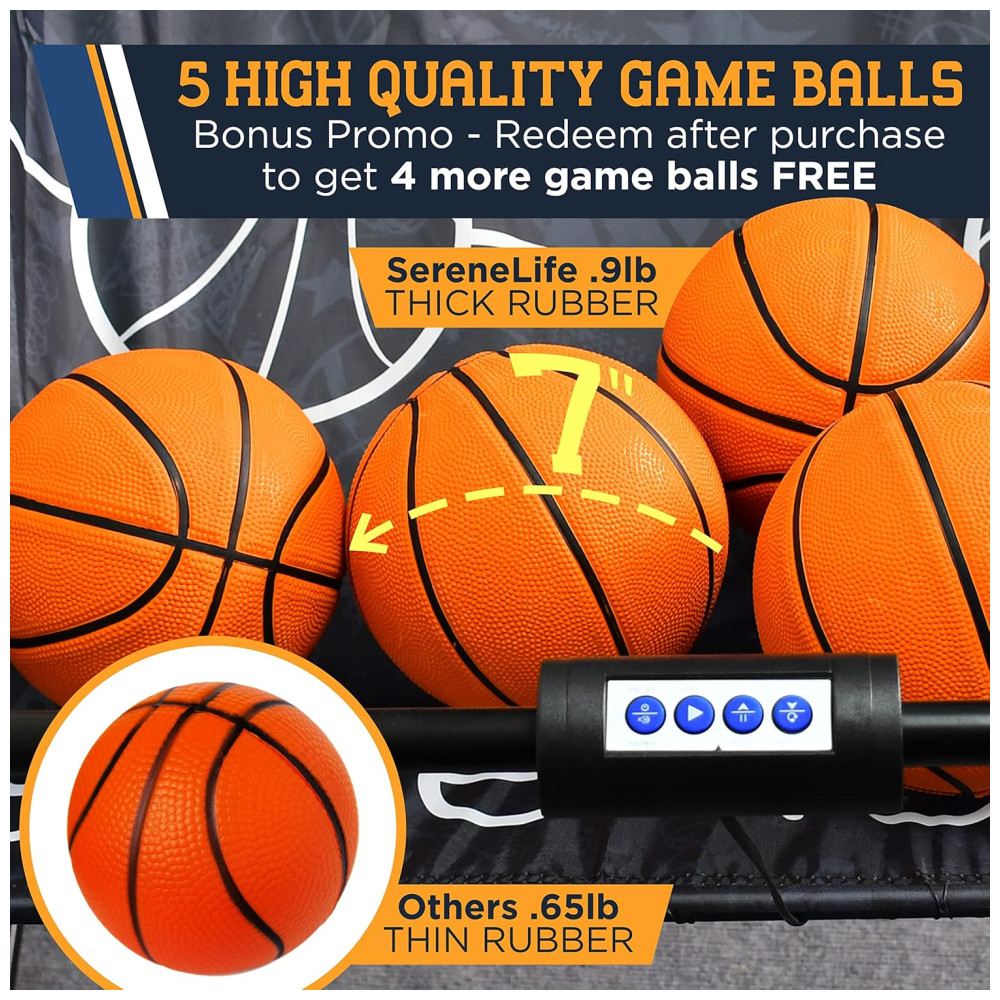 Basquete Eletrônico SereneLife com 2 Cestas Placar LED Digital e CronômetroIdeal para Crianças e Adultos. Design Dobrável Perfeito para Salas de Jogos.