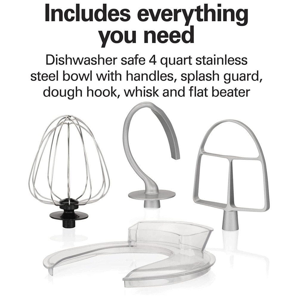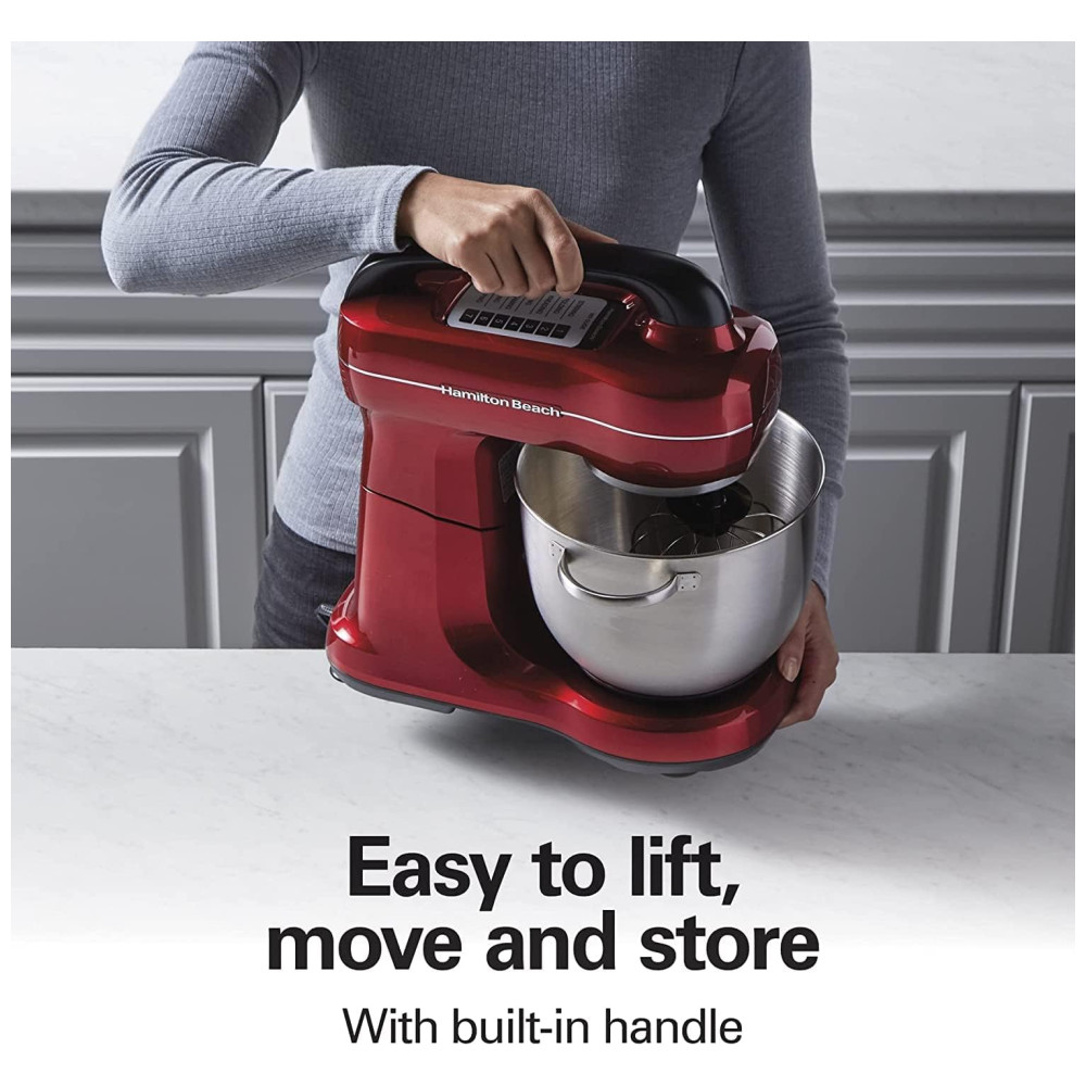 Construída para uma variedade de massas e misturas, esta batedeira Hamilton Beach Stand Mixer pode fazer de tudo, desde bater merengues delicados até misturar massa de pão pegajosa.