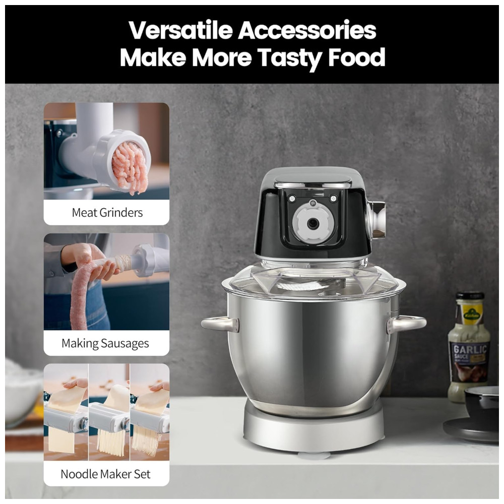 Batedeira 5L com 11 Velocidades Tigela em Aço Inoxidável e 3 Acessórios 110V 800W HAUSWIRT Preta