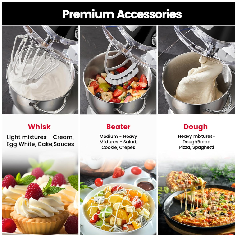 Com 11 opções de velocidade diferentes, esta batedeira é perfeita para misturar massa de pão, massas grossas, merengues e cremes para bolo, além de uma velocidade mais baixa para misturar e refinar suas misturas mais delicadas. A batedeira possui acessórios 3 em 1 seguros para máquina de lavar louça, incluindo batedor de ovos, gancho de massa e batedor plano para fácil instalação e durabilidade.