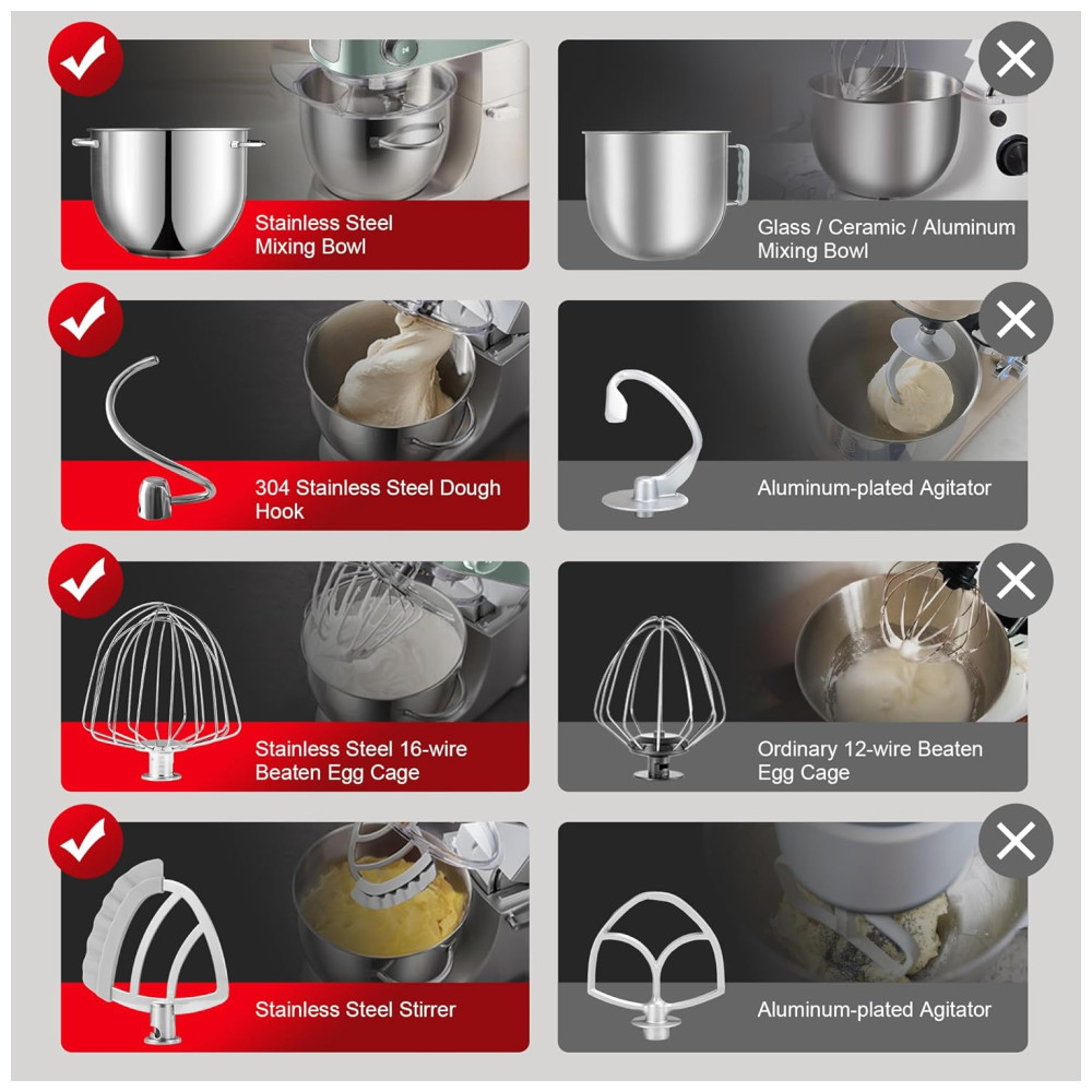 Todos os acessórios da batedeira podem ser lavados na máquina de lavar louça para uma limpeza rápida e fácil. Esta batedeira é um presente ideal para sua família e amigos.