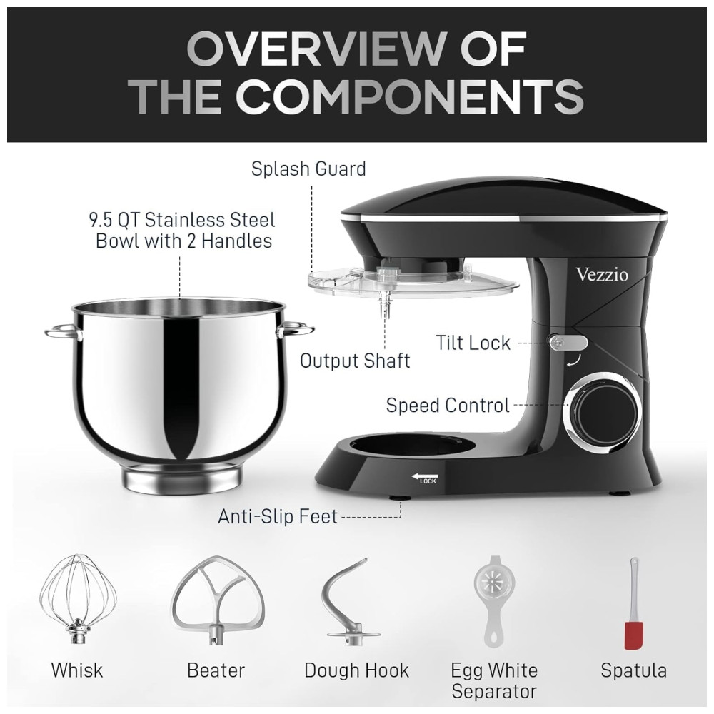 Apoiada pela certificação ETL e proteção contra superaquecimento e sobrecarga, a batedeira profissional Vezzio é a escolha perfeita para uso doméstico ou como presente. Experimente hoje mesmo a ferramenta de cozimento perfeita com o Vezzio Stand Mixer