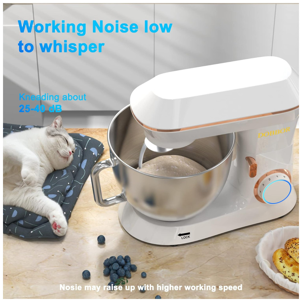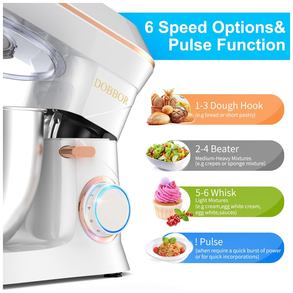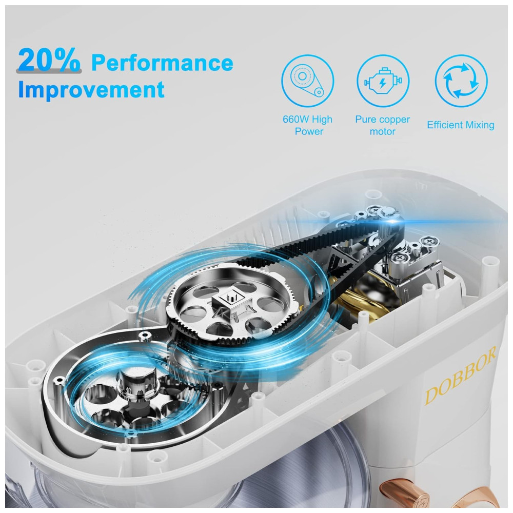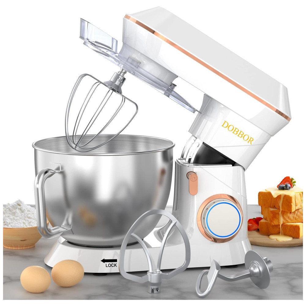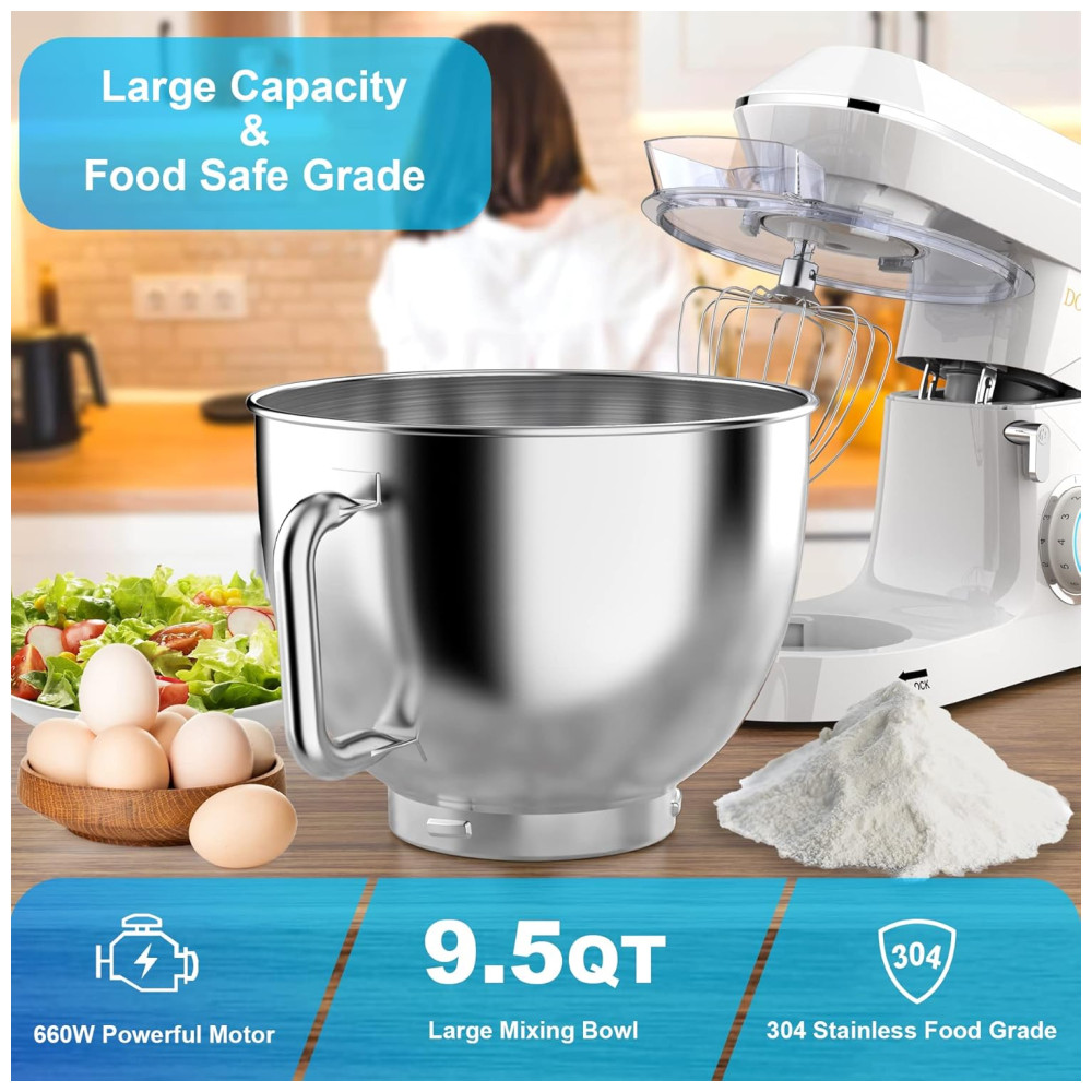 Batedeira 9L com 7 Velocidades Gancho de Massa 2 Batedor e Proteção Contra Respingos 110V 660W DOBBOR Branca
