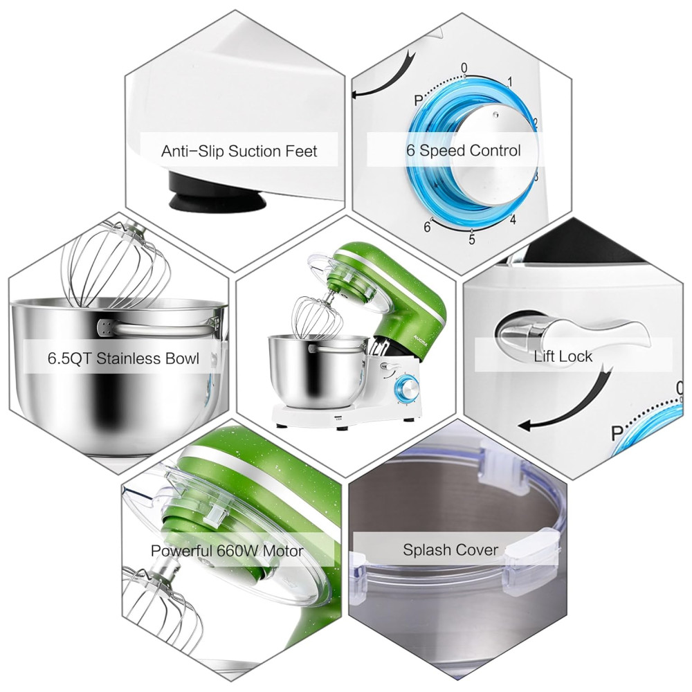 Com um motor poderoso de 660W e controle de velocidade variável, esta batedeira da Aucma é a escolha ideal para sua cozinha. Possui 6 velocidades otimizadas, além de função pulsar, permitindo preparar uma variedade de receitas. Com capacidade de 6.5Litros em sua tigela de aço inoxidável com alças, é fácil de usar para fazer bolos, pães, biscoitos, massas e waffles. O design basculante facilita a instalação e remoção da tigela e acessórios, além de contar com um elegante cinto de aço inoxidável e luz LED azul como indicador de energia. Acompanha três acessórios de mistura aprimorados que são seguros para lava-louças. Ideal para presentear, esta batedeira Aucma é um dos melhores eletrodomésticos para a sua cozinha.
