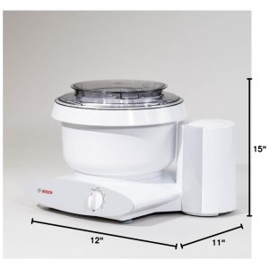 Descubra a Batedeira com Possibilidades Ilimitadas da Bosch Universal Plus! Com um motor potente de acionamento inferior, oferece 4 velocidades e um interruptor momentâneo para máxima facilidade de uso. Pés com ventosas mantêm a batedeira estável durante o preparo de receitas desafiadoras. Com 20 acessórios projetados para todos os tipos de alimentos, você pode criar qualquer receita que desejar. A reputação de qualidade da Bosch Universal começou em 1952, garantindo confiabilidade. Seu design compacto e leve, com motor abaixo da tigela, conta com dois batedores de arame para triplicar a ação de bater, possibilitando até mesmo bater uma clara de ovo em mais de uma xícara de merengue. O gancho de massas pesado é projetado para imitar os movimentos da amassar à mão, garantindo o desenvolvimento máximo do glúten. Com o extensor de gancho de massas incluído, você pode amassar desde um único pão até 14 pães de 450g cada. A transmissão por correia oferece torque adequado para preparar receitas leves ou pesadas sem superaquecer. A base com quatro ventosas mantém a batedeira estável. Escolha entre 4 velocidades com função pulsar. Inúmeros acessórios opcionais estão disponíveis para compra separadamente, como liquidificador, moedor de carne, espremedor de cítricos, processador de alimentos, fatiador/ralador, e muito mais. A tigela plástica de 6,5 litros é livre de BPA, leve e possui eixo removível para limpeza fácil. Com capacidade para qualquer tarefa de bater, amassar e misturar, a Bosch Universal Plus é a escolha perfeita para sua cozinha!