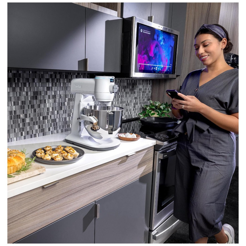 Batedeira com Balança Inteligente Tecnologia Auto Sense Tigela de Aço Inoxidável 66L Gancho de Massa 11 Velocidades e Compatível Amazon Alexa e Google Home 110V 540W GE PROFILE Branca