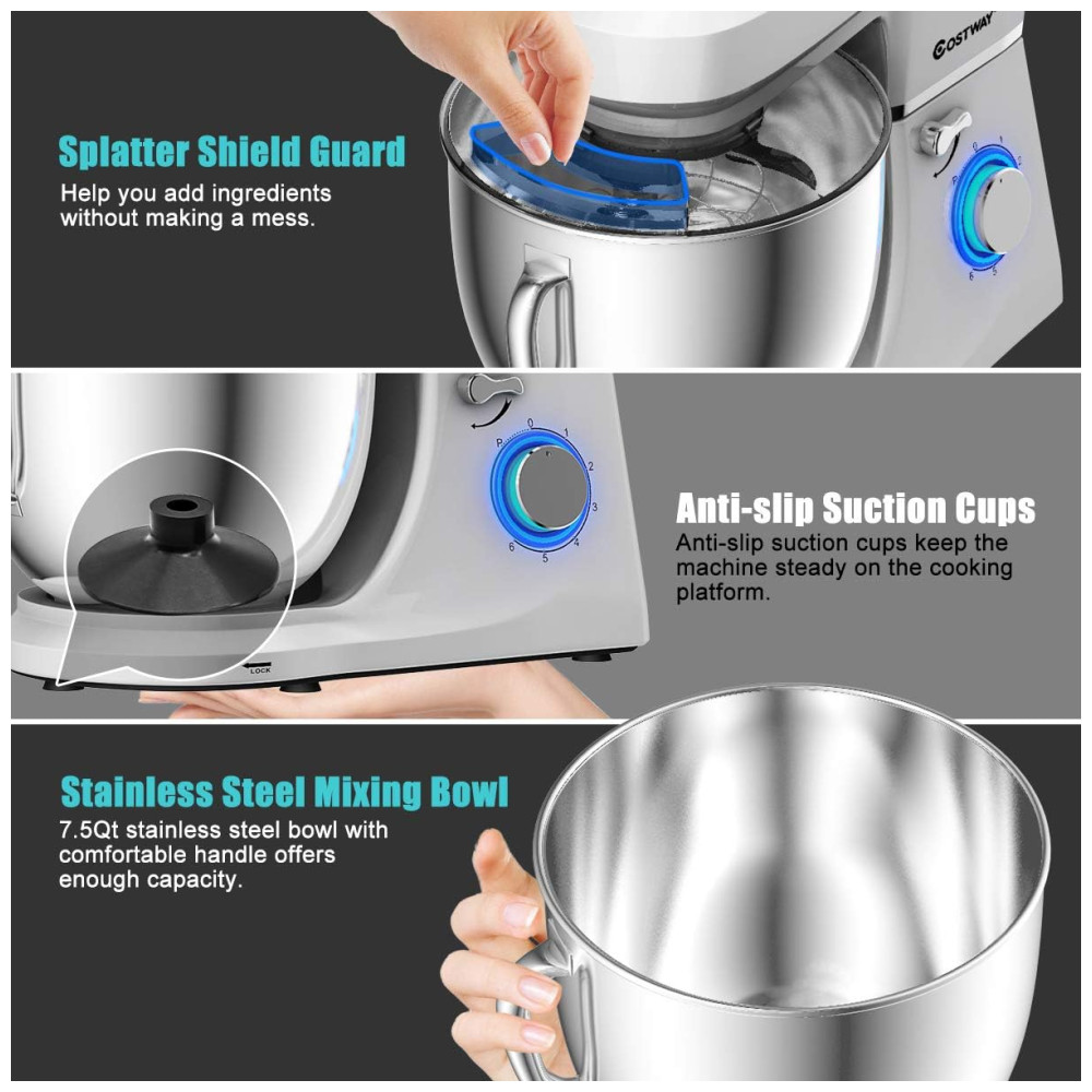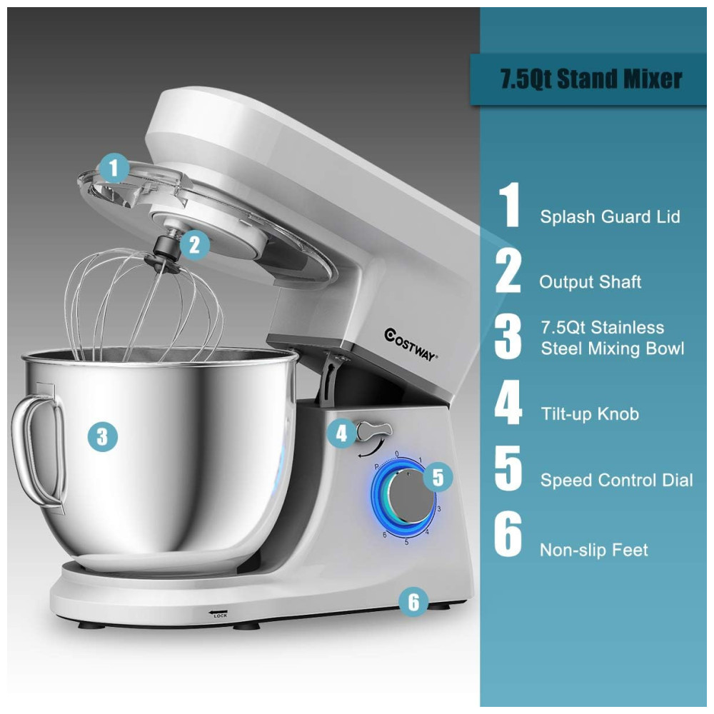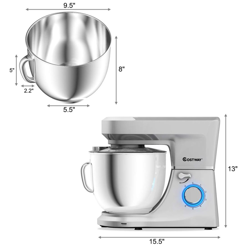 Batedeira COSTWAY 6 Velocidades 7 Litros 660W Prata 110V