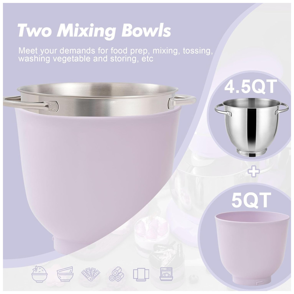 Batedeira de Cozinha Kitchen in the box 45 Litros5 Litros com Duas Tigelas Mixer Elétrico de 10 Velocidades em Acabamento Fosco para Uso Diário – Lilás