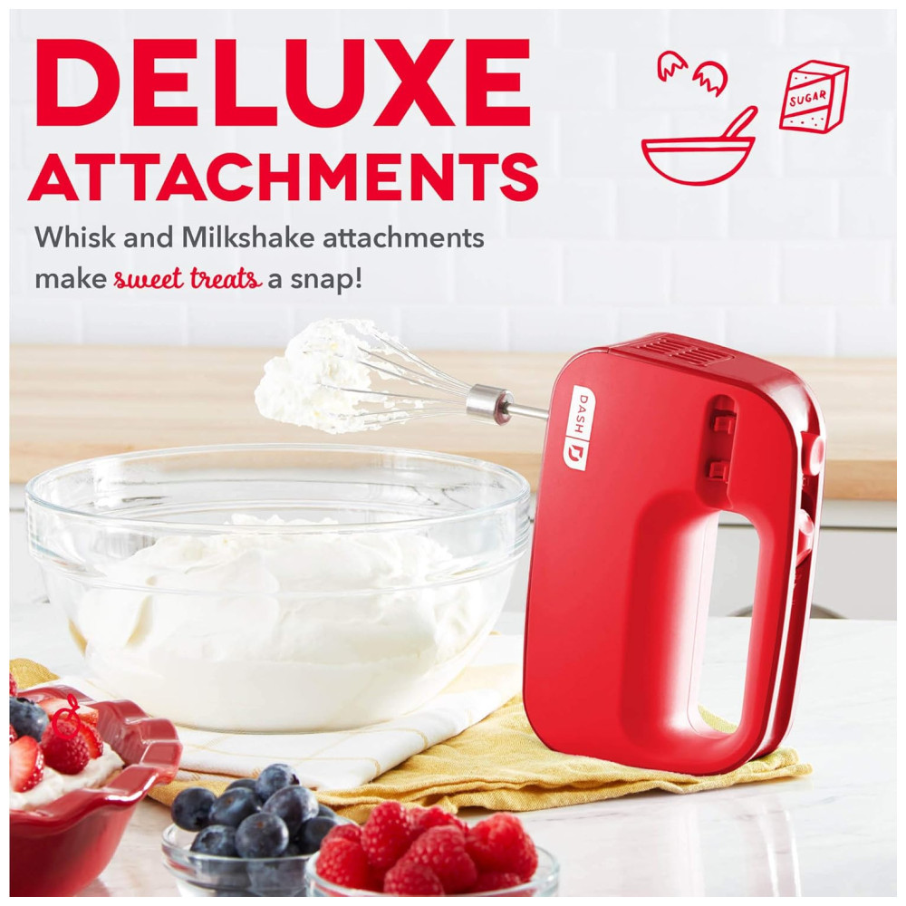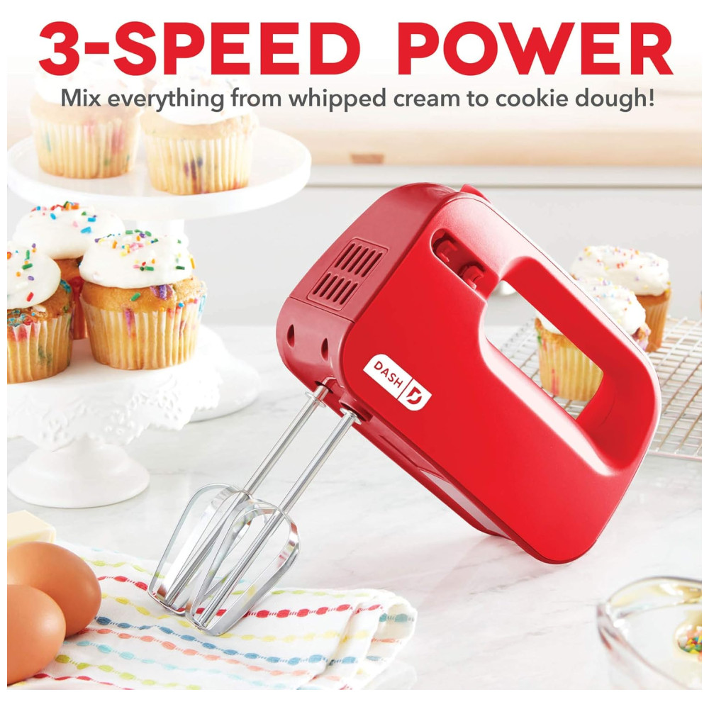 Batedeira de Mão com 3 Velocidades e Acessórios Aço Inoxidável 150W 110v DASH DSHM155GBRD04 Vermelho