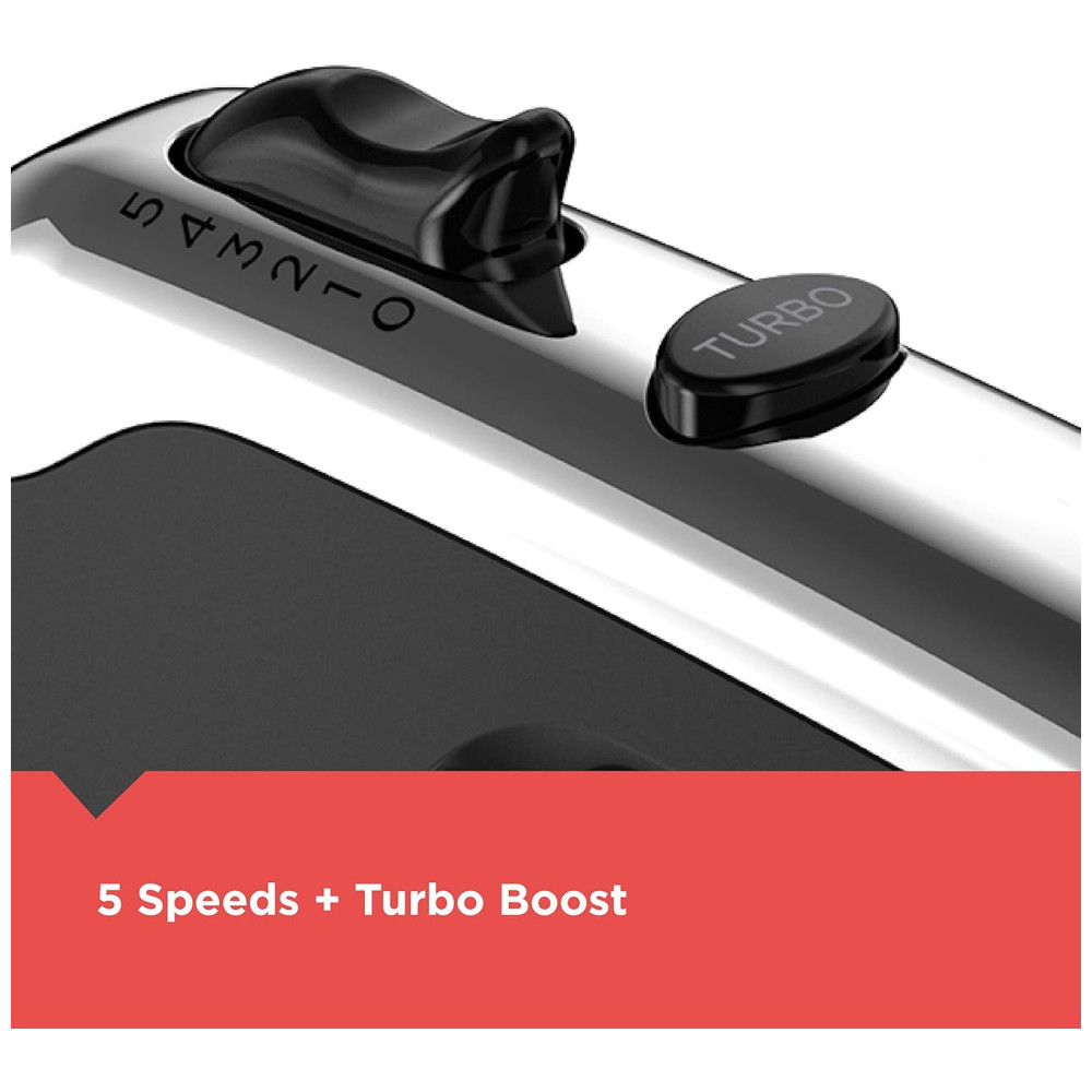 5 velocidades Turbo Boost Encontre a velocidade certa para cada tarefa de mixagem. Além disso, você pode aumentar lentamente a velocidade para obter a consistência ideal de mistura e evitar bagunças