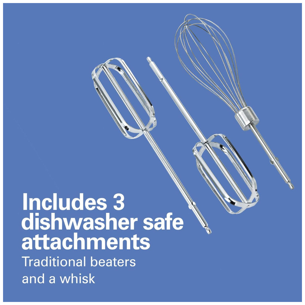 Inclui conjunto completo de 3 peças a batedeira manual Hamilton Beach inclui tudo o que você precisa para começar a misturar. Vem com 2 batedores tradicionais que podem ser lavados na lava louças e um batedor. Todos os acessórios são guardados perfeitamente no estojo de zenamento de encaixe