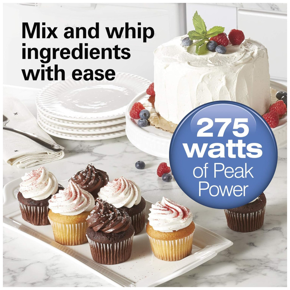 Misture e bata ingredientes com facilidade com potência de pico de 275 watts, a batedeira manual facilmente mistura e bata os ingredientes para suas receitas favoritas, quer você esteja adicionando ingredientes pesados como nozes à massa de biscoito ou fazendo merengue leve e fofo para uma torta