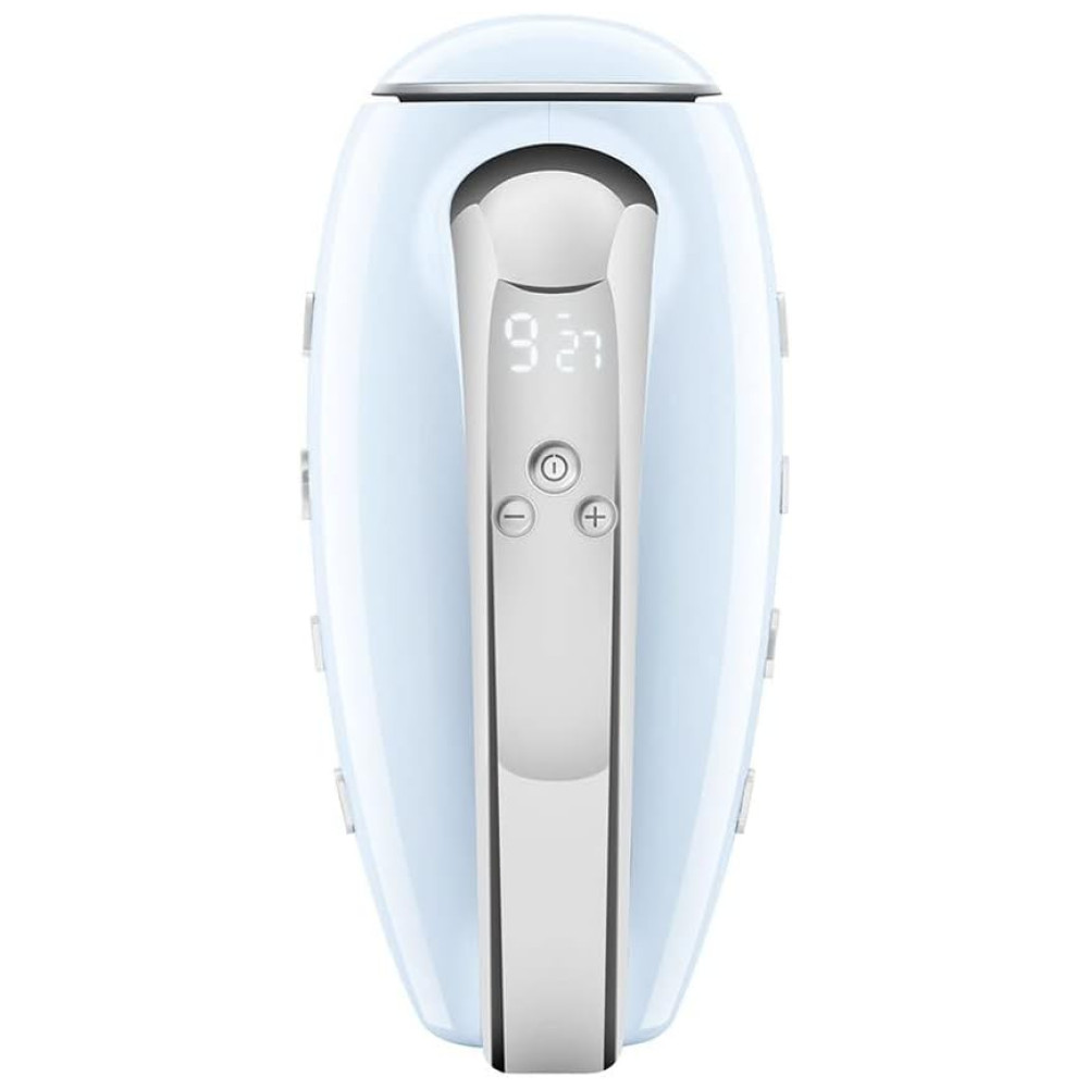A batedeira portátil SMEG Azul Retrô foi projetada para unir design icônico em estilo anos 50 à alta performance técnica. Com corpo em alumínio e detalhes em aço inoxidável, dispõe de nove velocidades e função turbo, atendendo diferentes demandas de preparo culinário. A exclusiva tecnologia de partida suave (Smooth Start) evita respingos ao iniciar a operação, proporcionando maior controle durante o uso. O display LED com temporizador oferece visualização precisa do tempo de preparo e velocidade selecionada, facilitando ajustes para receitas variadas. Acompanha conjunto completo de acessórios em aço inox: dois batedores, dois ganchos para massa, dois batedores tipo globo e bolsa de armazenamento. Recomendado para quem busca versatilidade e acabamento premium, adaptando-se a batimentos leves e pesados em massas, cremes e claras. Produto não compatível com lava-louças.