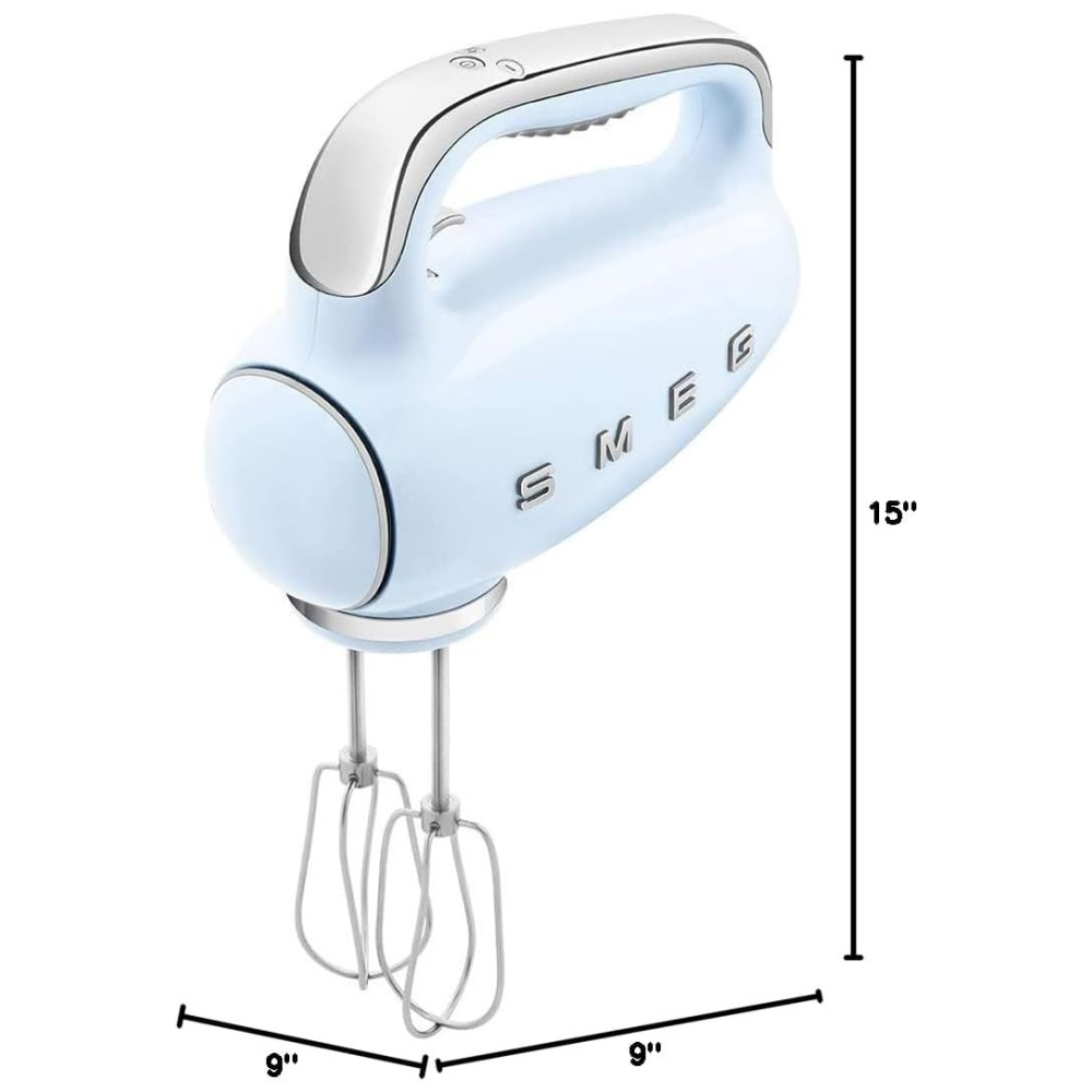 Batedeira Portátil SMEG Azul Retrô 9 Velocidades 220W Display LED Turbo Acessórios em Inox Bolsa de Armazenamento 110V