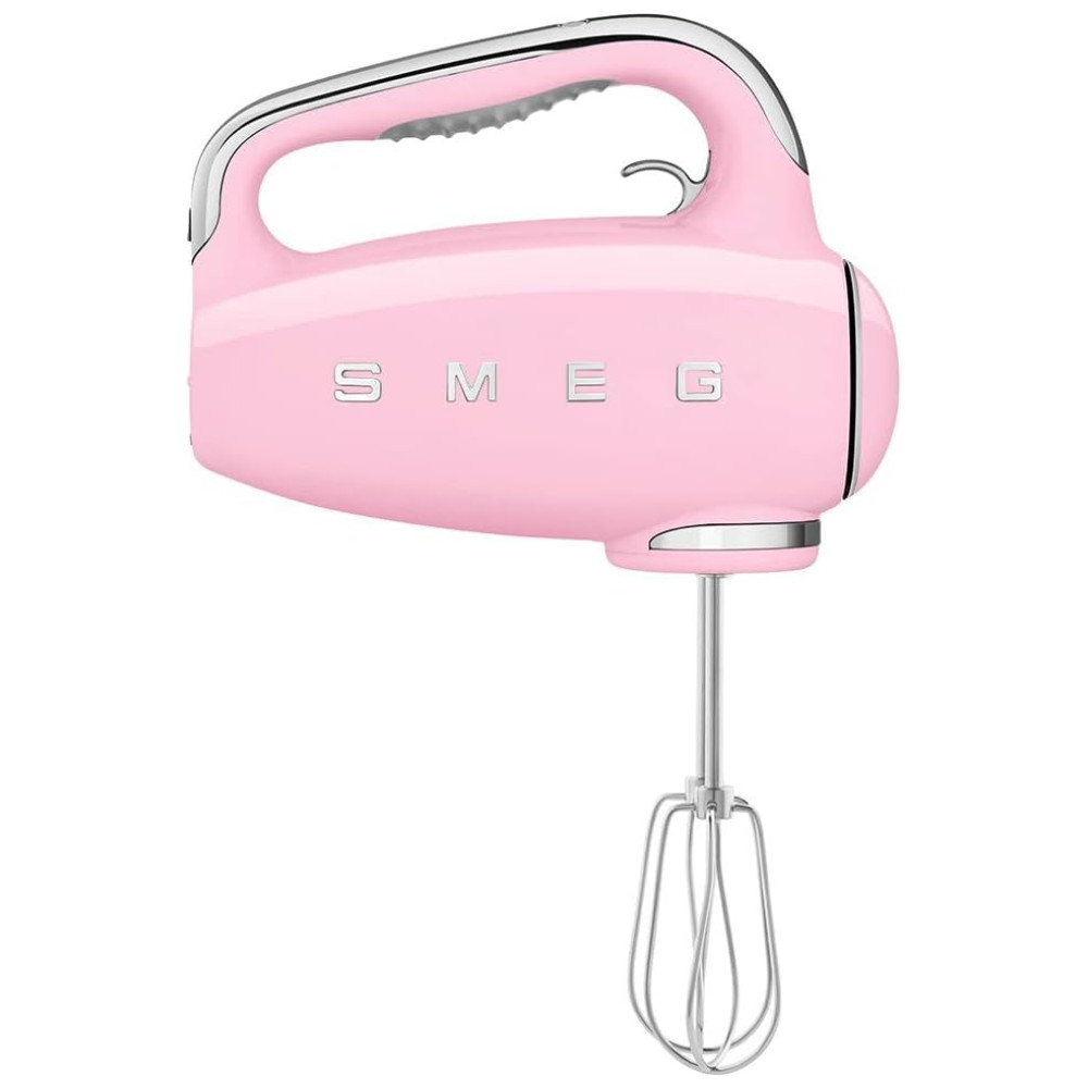 Batedeira Portátil SMEG Rosa Retrô 9 Velocidades 220W Display LED Turbo Acessórios em Inox Bolsa de Armazenamento 110V