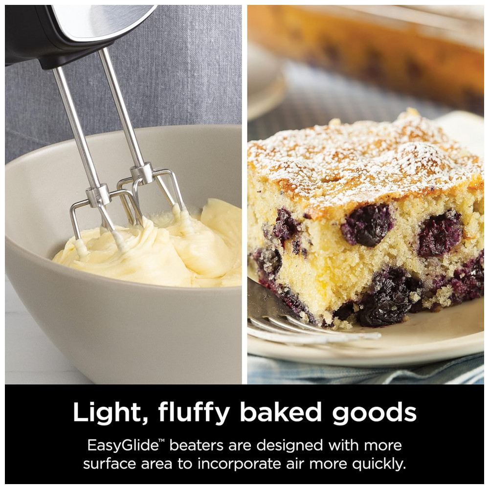 Controle de velocidade variável permite que você ajuste a velocidade de acordo com suas necessidades, com 5 velocidades para mistura e 2 para blendagem. Os batedores EasyGlide foram projetados com uma área de superfície maior para incorporar ar na massa mais rapidamente, resultando em assados leves e fofinhos.