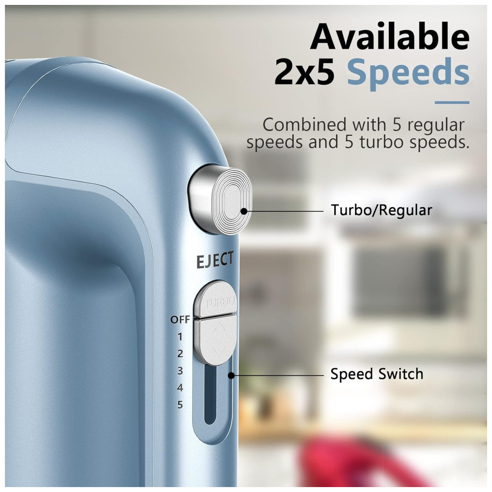 Batedeira de Mão Elétrica com Botão de Ejeção e 5 Velocidades 110V 450W LILPARTNER Azul