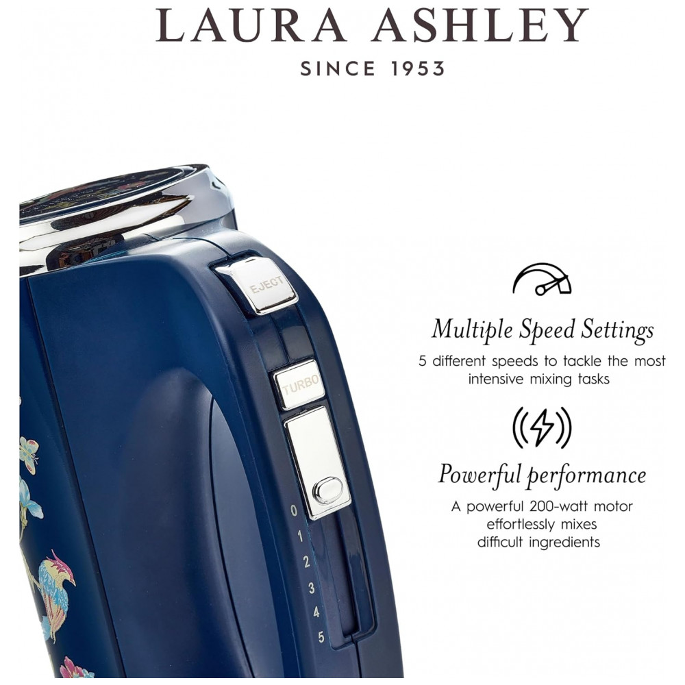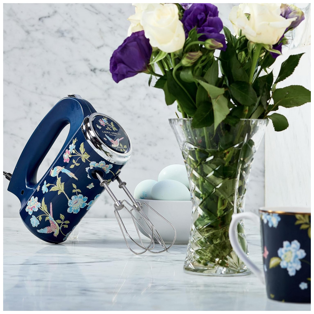 Batedeira de Mão Laura Ashley 200W Azul Marinho com Estampa Floral Elveden 5 Velocidades Turbo Inox VQ-SBSMR57-LAEN-US 110V