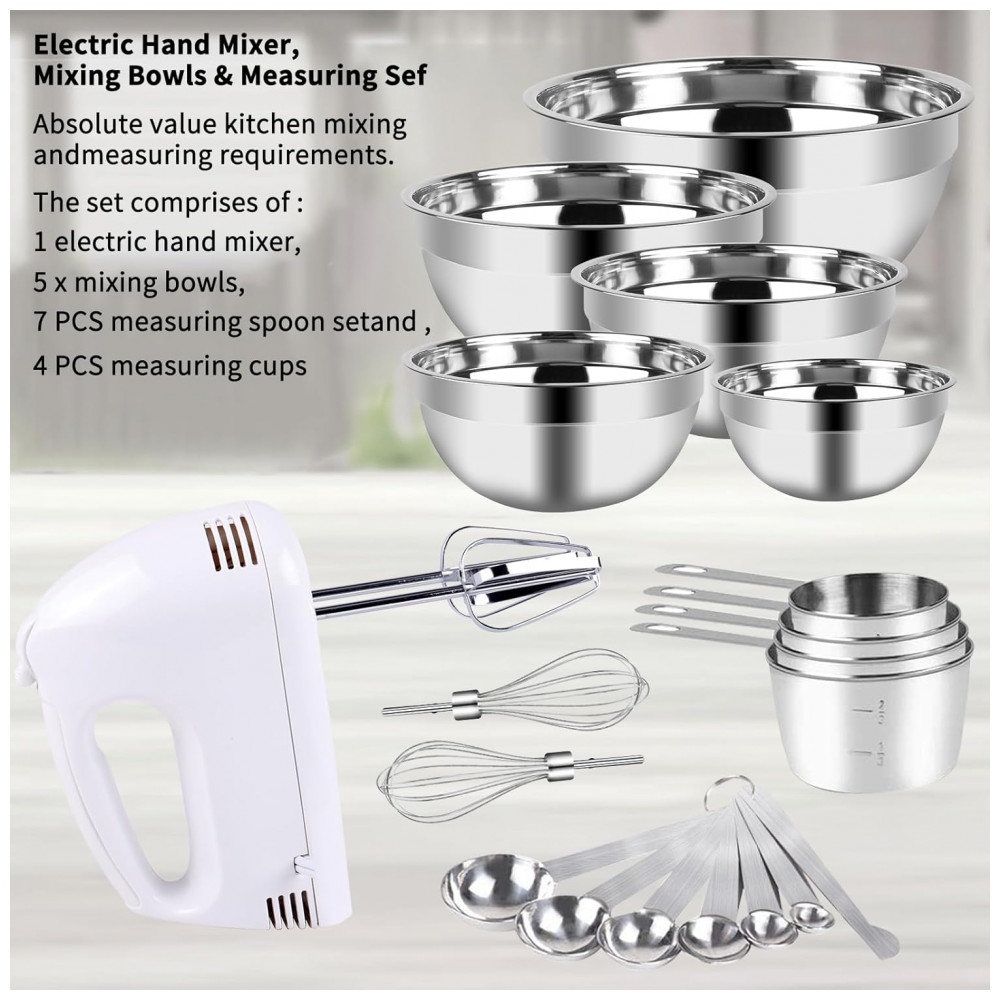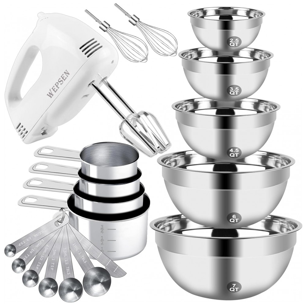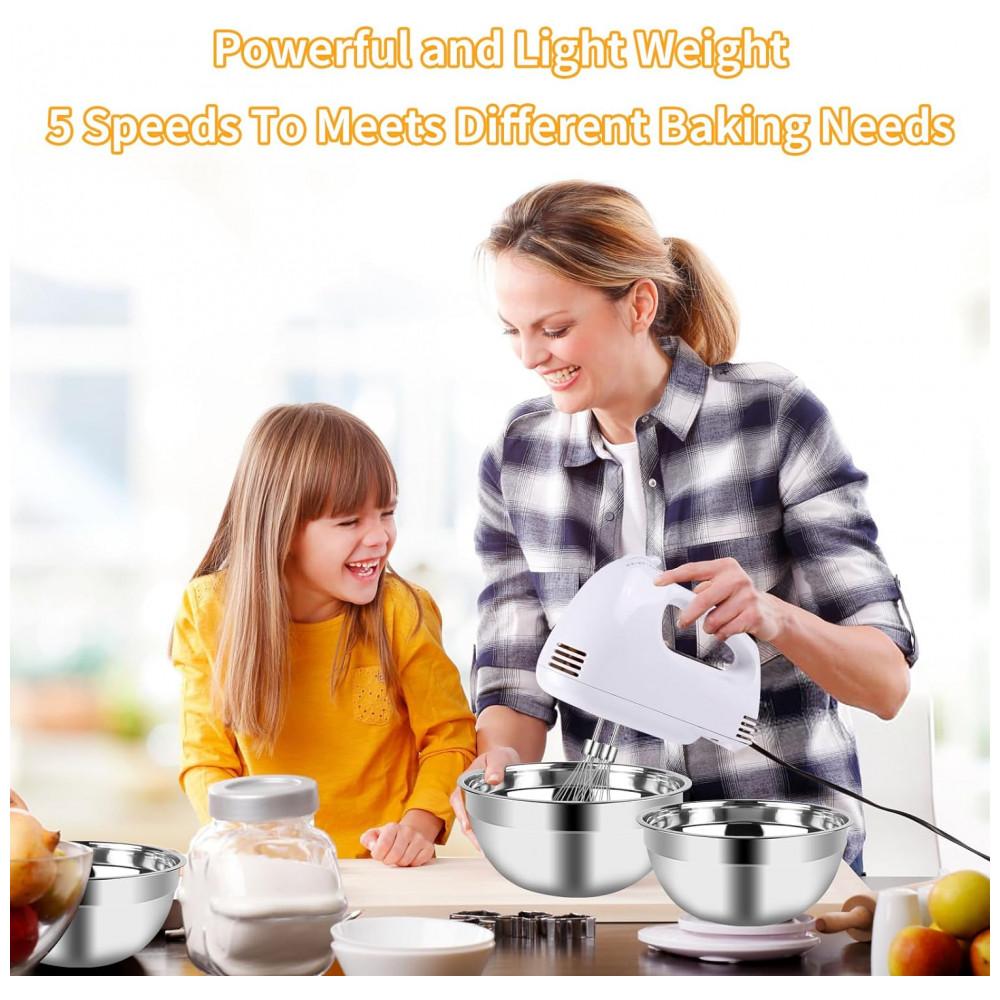 Batedeira Elétrica com 5 Tigelas em Aço Inox e Colheres Medidoras 110V 150W WEPSEN Branca