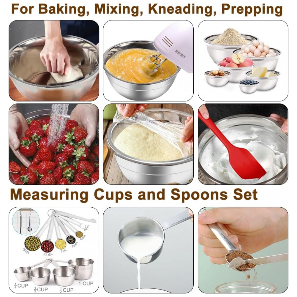Conjunto de cozimento essencial para cozinha esta é uma combinação versátil que é um ótimo conjunto de utensílios de cozinha para assar e preparar Poseeruiz antes da refeição. Essas tigelas de salada ou tigelas de servir se aninham perfeitamente e oferecem zenamento com eficiência de espaço, ajudando a organizar os armários da cozinha. É um bom presente para iniciantes, amantes de panificação, apartamento , aniversários, Páscoa e etc