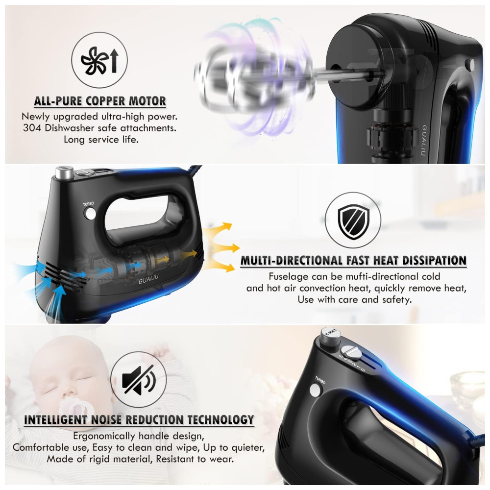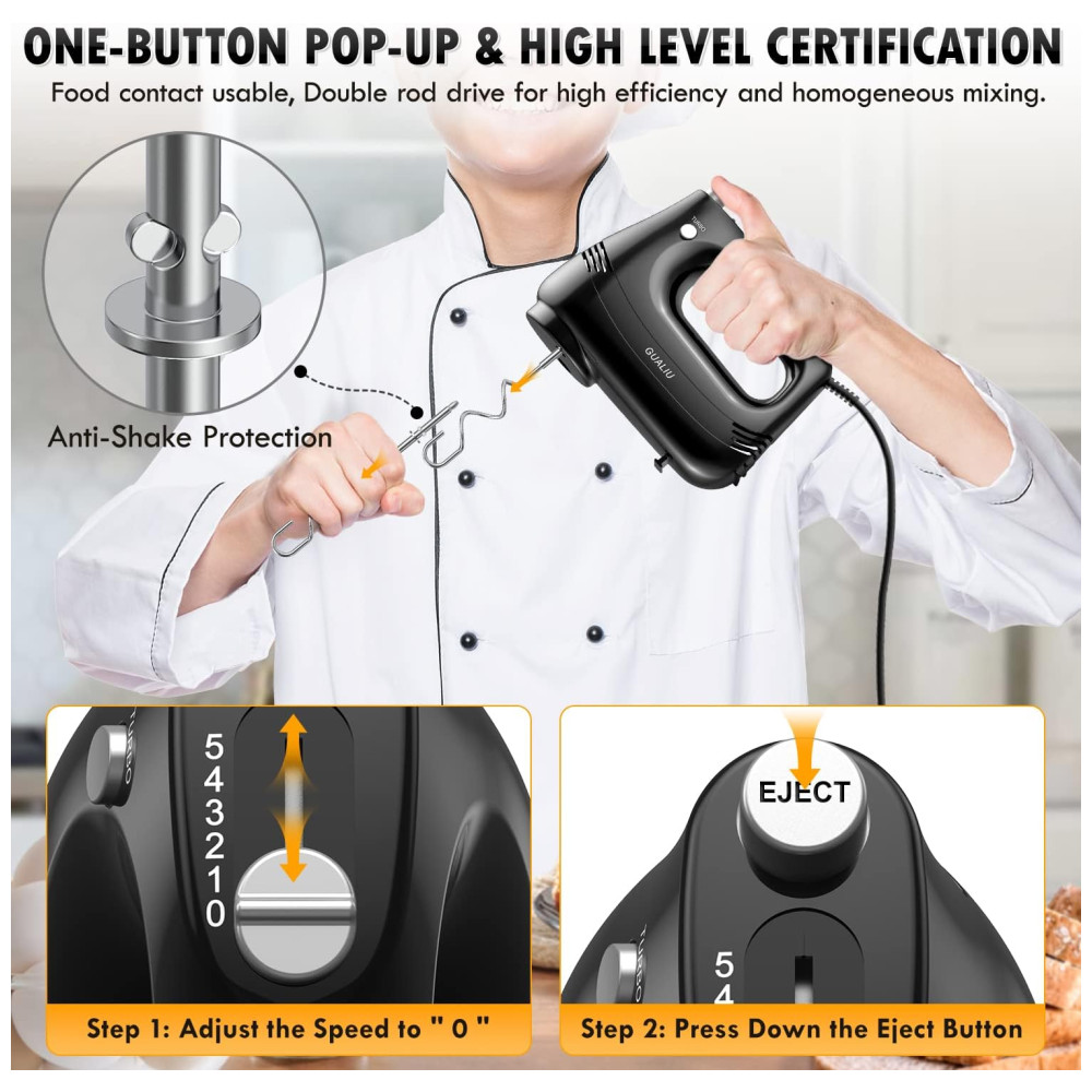 Batedeira Elétrica com Botão de Ejeção e Acessórios 110V 150W GUALIU Preta