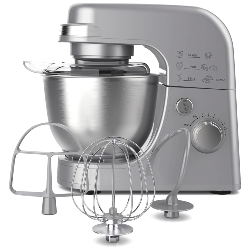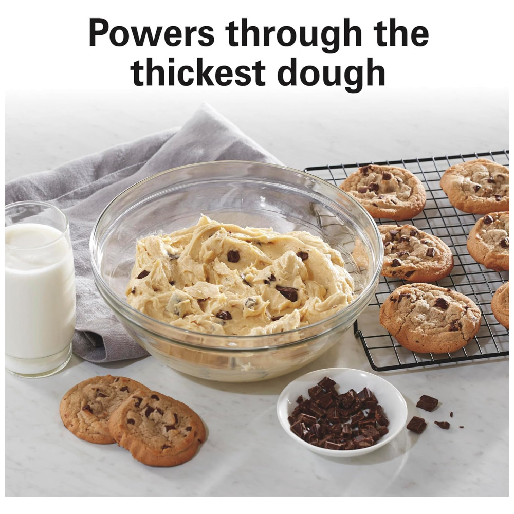 PODE ATRAVÉS DA MASSA MAIS GROSSA E MANTÉM A VELOCIDADE CONSTANTE. Não importa quão grossos ou pesados sejam seus ingredientes, o potente motor de 300 watts desta batedeira de cozinha mantém a velocidade constante.