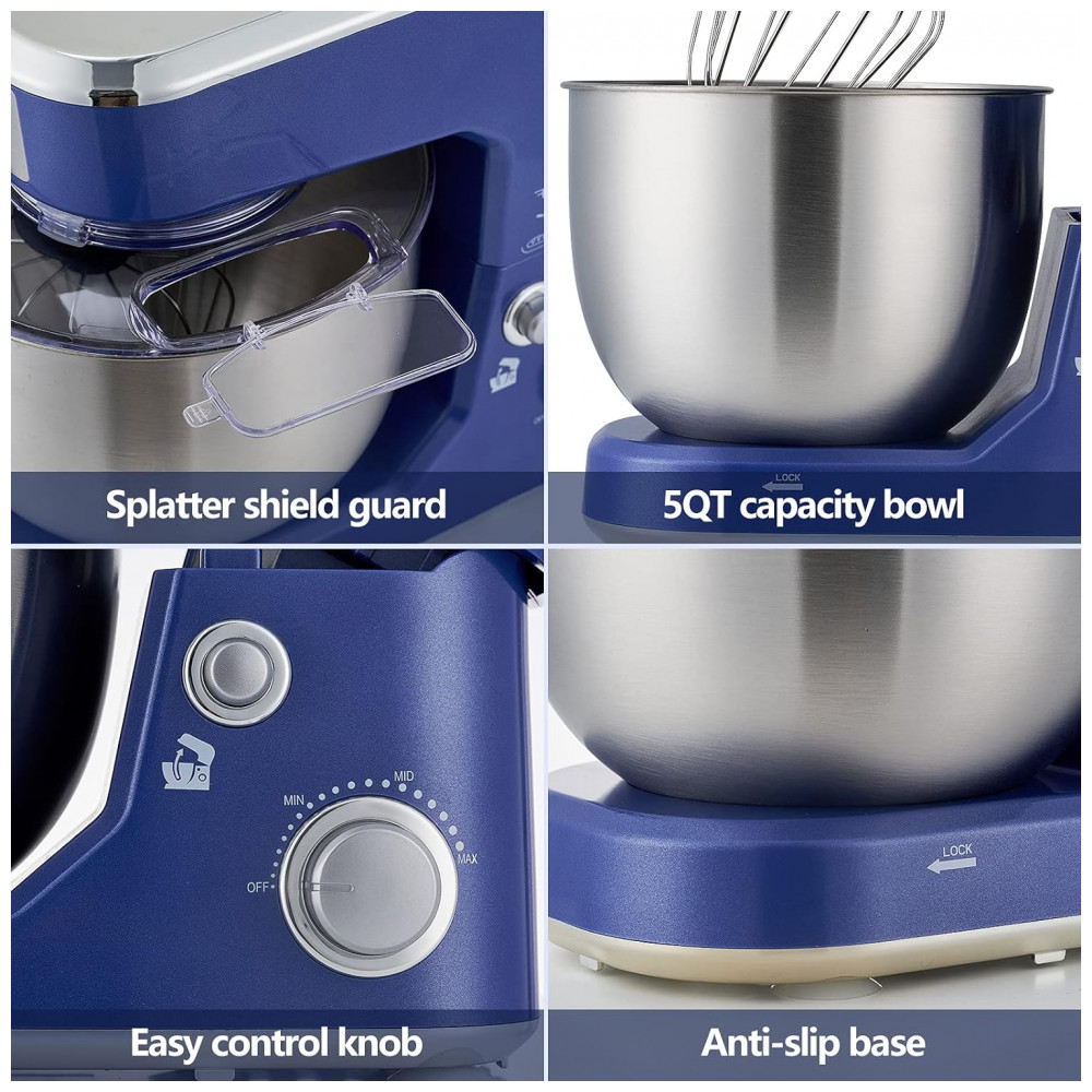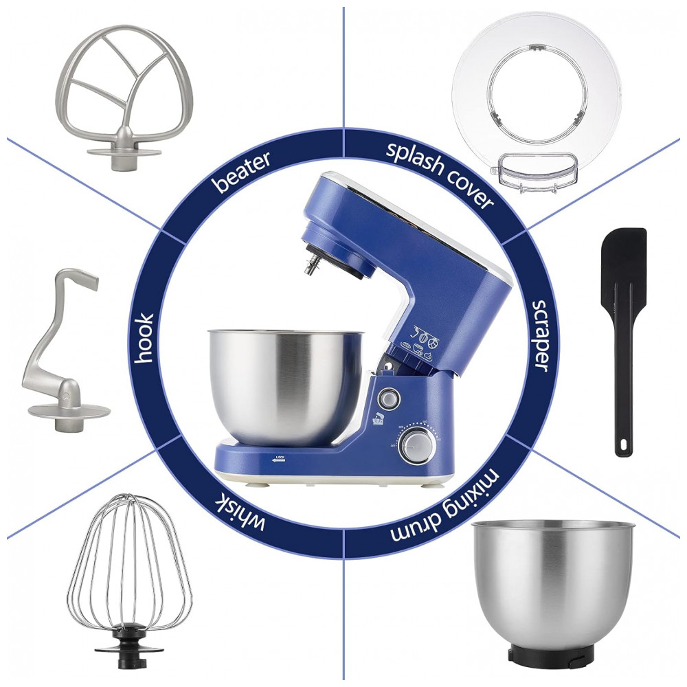 Batedeira Elétrica de Bancada 5 Litros com Proteção Contra Respingo e Acessórios 110V 400W Cusimax Azul