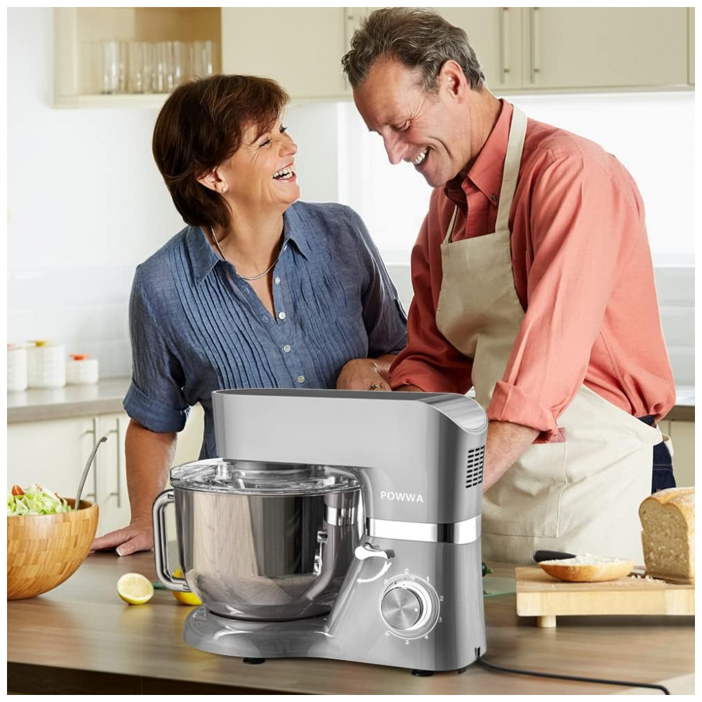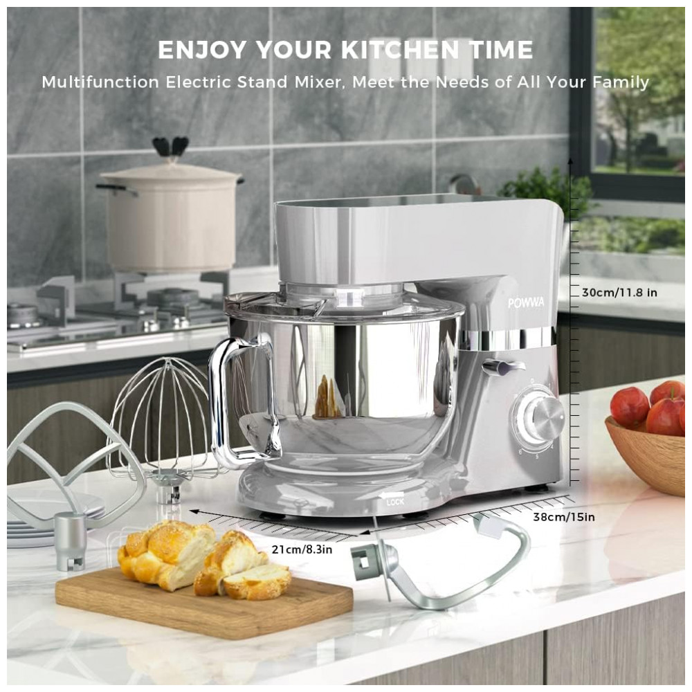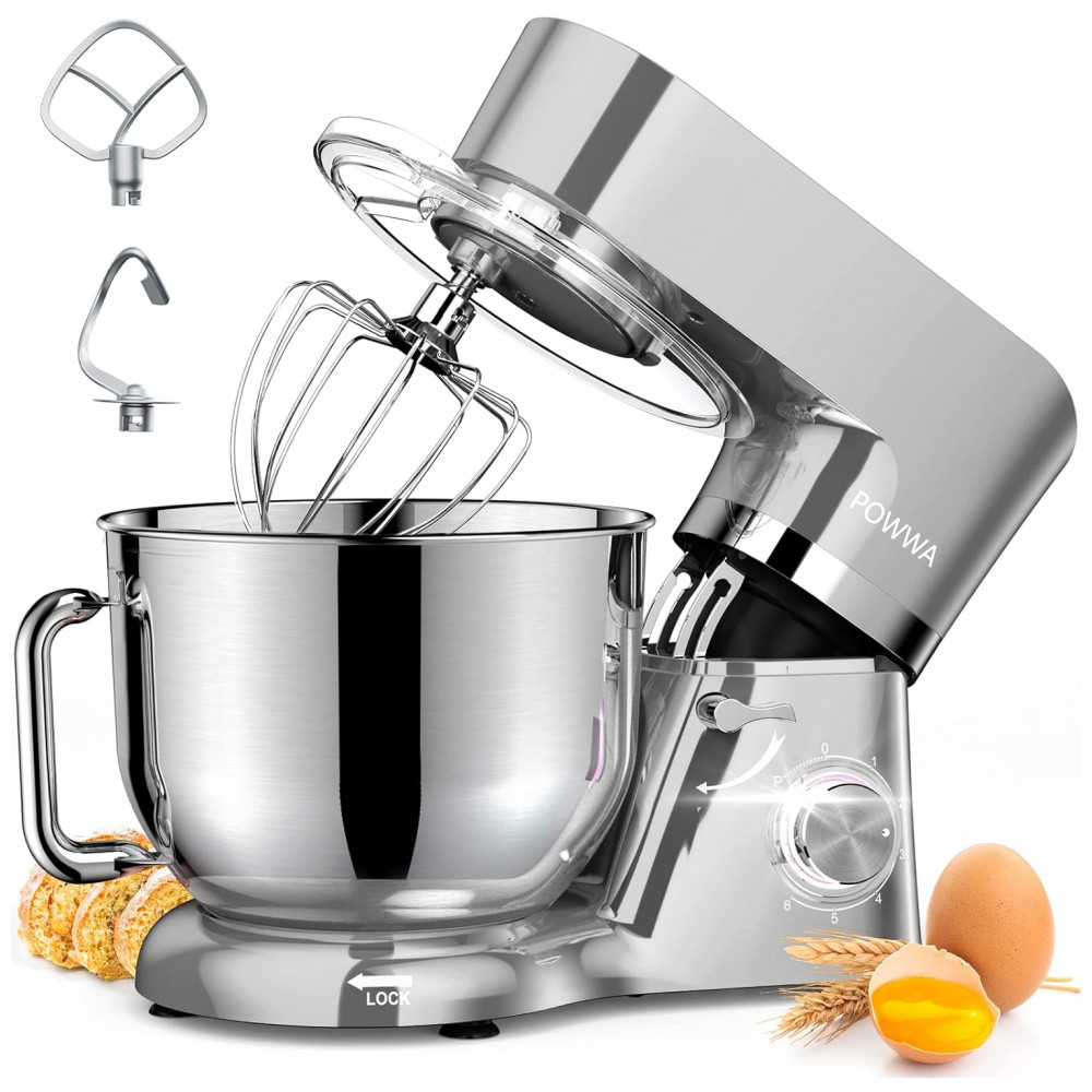 Batedeira Elétrica de Bancada 7.5 Litros 6 Velocidades em Aço Inoxidável 110V 660W POWWA Prata