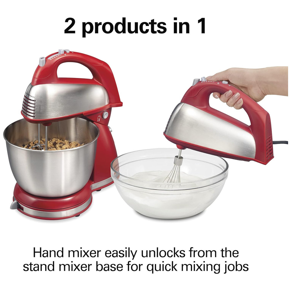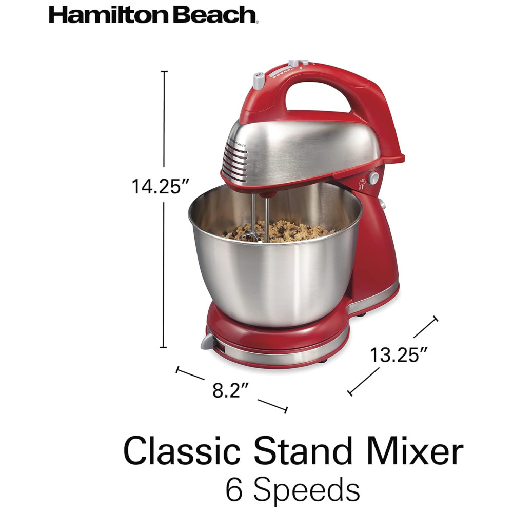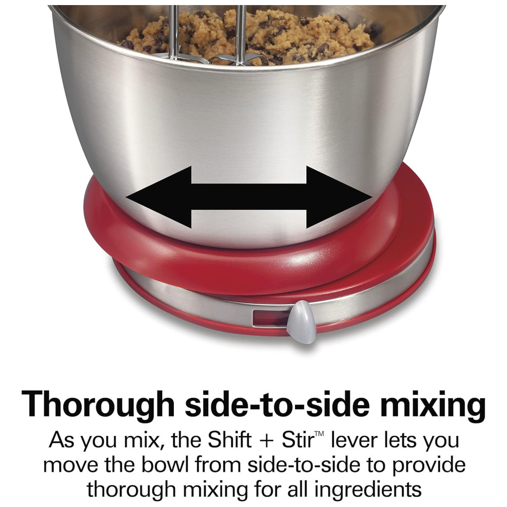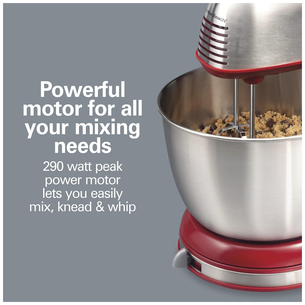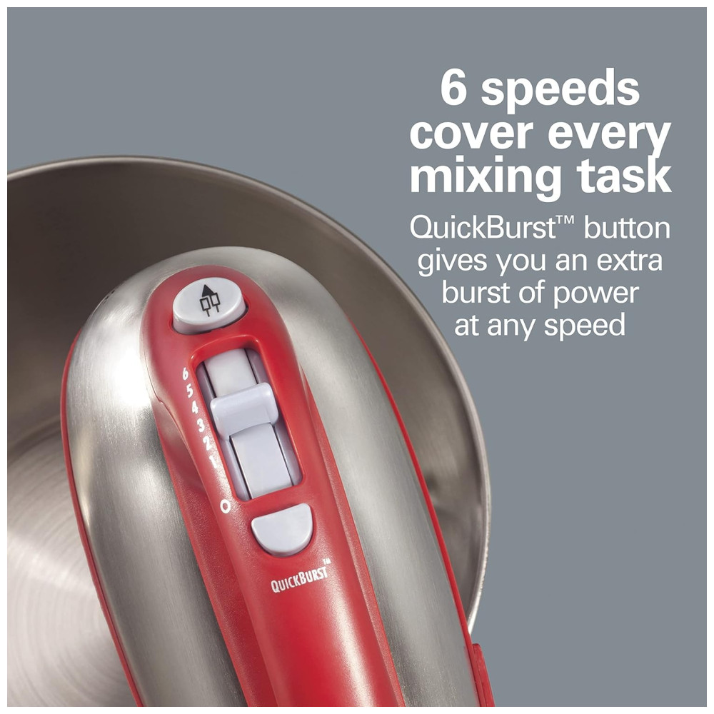 Batedeira Hamilton Beach 4 Litros 6 Velocidades 290W Vermelha – Stand Mixer e Batedor de Mão com QuickBurst e Descanso da Tigela