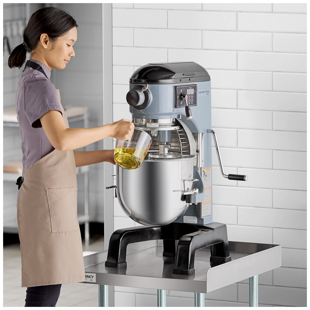 A poderosa batedeira planetária da Centerline by Hobart é projetada para resistir ao uso diário, com motor de 3 velocidades e transmissão por engrenagens. Possui controles digitais fáceis de usar com timer e recurso de Lembrete de Último Tempo. A tecnologia GearSafe e o sistema triplo de intertravamento garantem operação suave e segura. Inclui uma tigela de aço inoxidável de 18,93 Litros, batedor, globo e gancho para massa para máxima versatilidade. Com design eficiente e conveniente, essa batedeira simplifica tarefas de bater, misturar e agitar. Os acessórios versáteis e a construção fácil de limpar a tornam essencial para qualquer cozinha comercial. Com transmissão por engrenagens e motor de 1/2 hp de alta potência, garante desempenho robusto sem tempo ocioso. As 3 velocidades da batedeira asseguram resultados consistentes e de qualidade. A batedeira vem com uma tigela de aço inoxidável de 18,93 Litros e requer conexão elétrica de 110V. Com o levantamento manual EZ Grip da tigela, o processo é livre de esforços, mesmo com a tigela cheia. Para segurança do usuário, o sistema triplo de intertravamento só permite operação quando a tigela está no lugar e a proteção sobre a abertura está fechada. A tecnologia GearSafe evita mudanças acidentais de velocidade. Após o uso, a proteção da tigela é removível para limpeza, e a estrutura preta e cinza é fácil de limpar. A batedeira inclui batedor, globo e gancho para massa, além de um timer para controle do tempo de processamento. O recurso Lembrete de Último Tempo registra a última configuração do timer, ideal para uso em lotes.
