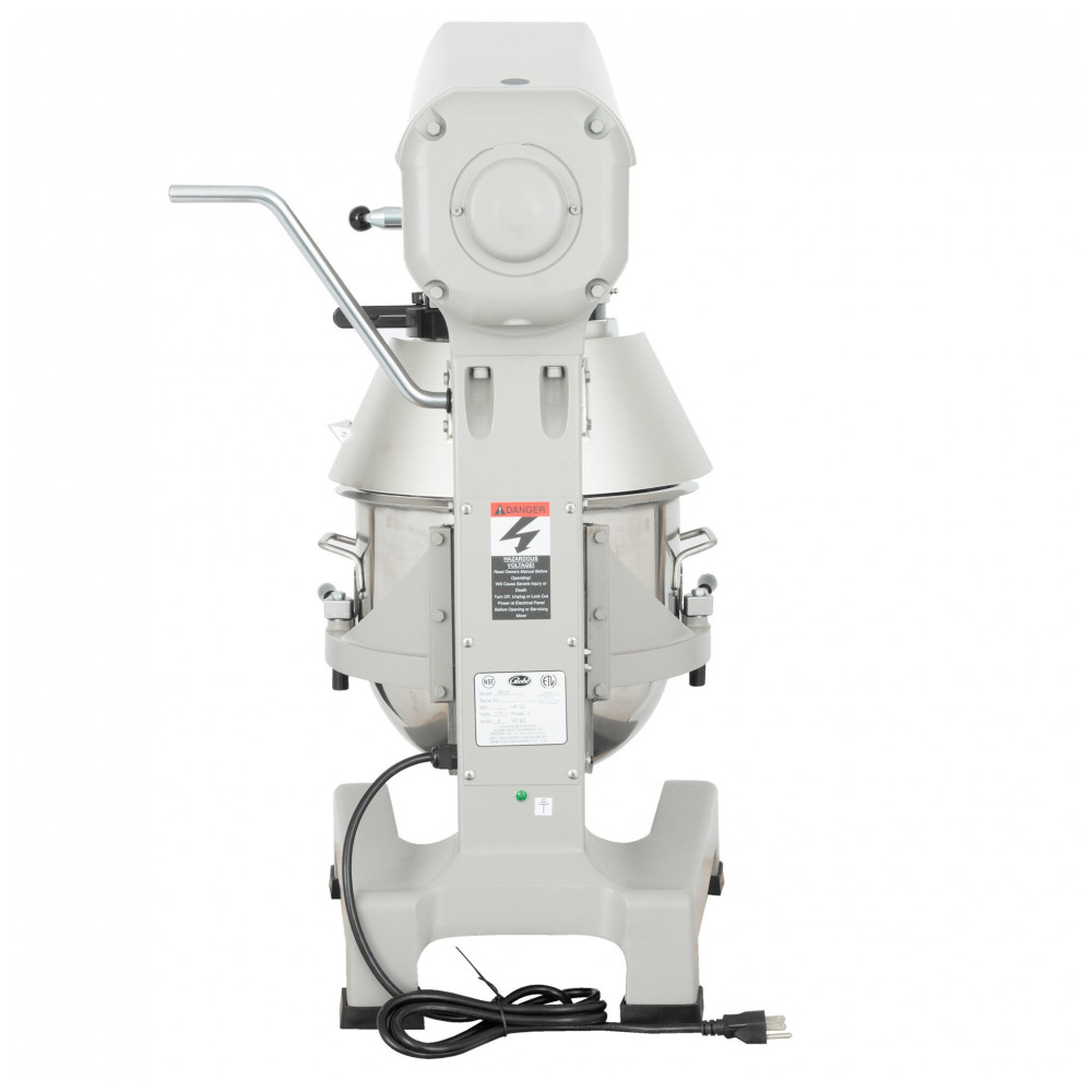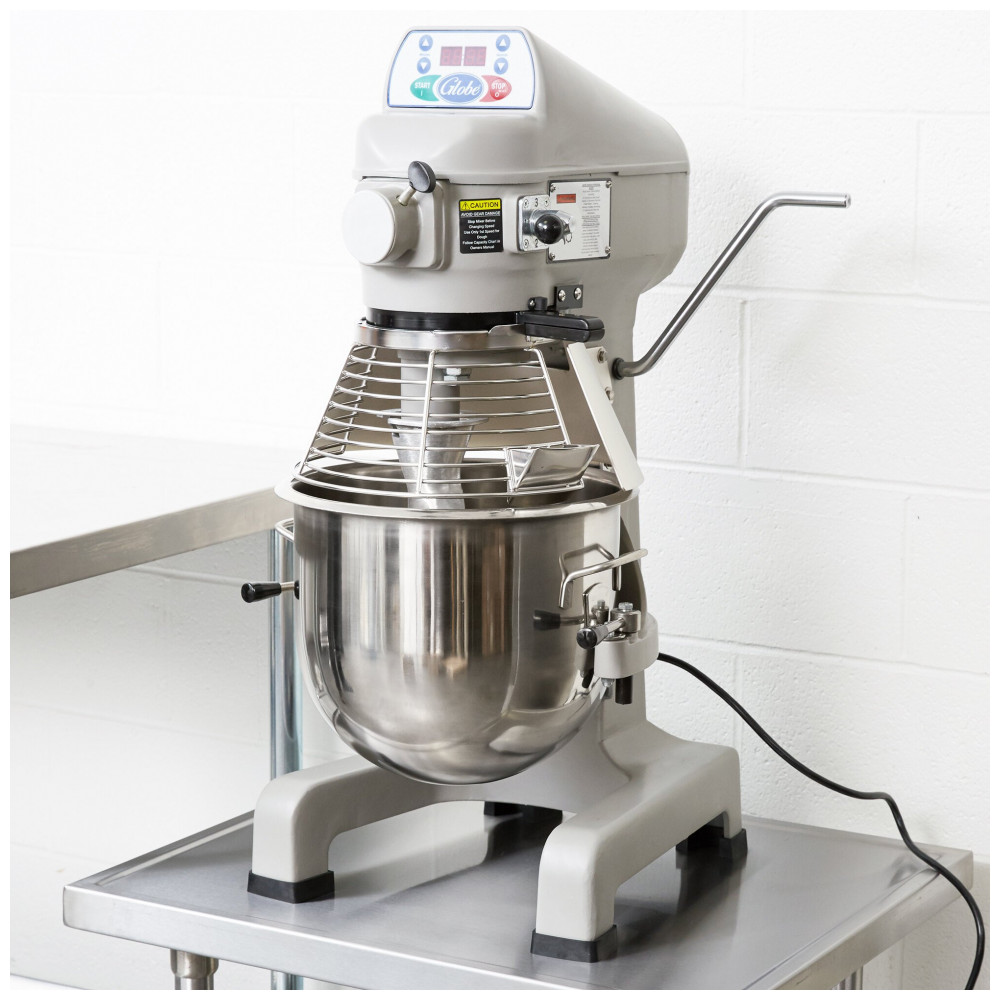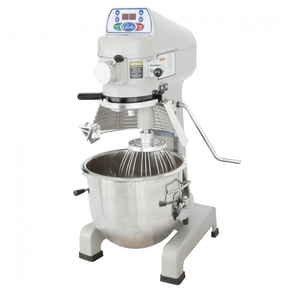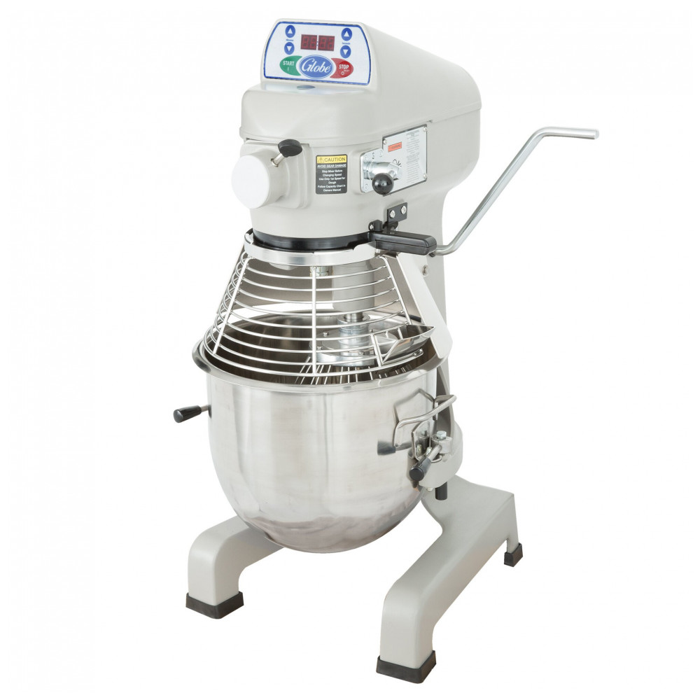 O Misturador Planetário Globe SP20 de 18,93 Litros combina potência de mistura com um design compacto, sendo perfeito para massas, purê de batatas e até mesmo para misturar massa de pizza. Com construção durável em ferro fundido e engrenagens tratadas termicamente, este misturador garante anos de uso e operação silenciosa. Equipado com motor de 1/2 hp de 3 velocidades e controles de velocidade elétricos, possui uma proteção de tigela para segurança. O temporizador confiável de 15 minutos com controle de toque montado na frente, juntamente com uma tampa com chute para ingredientes, oferece conveniência e precisão. A alavanca ergonômica facilita a elevação e abaixamento da tigela, com um sistema de intertravamento que desliga o misturador quando a tigela é abaixada, garantindo segurança. Este misturador Globe SP20 é ideal para as tarefas mais exigentes de estabelecimentos comerciais!