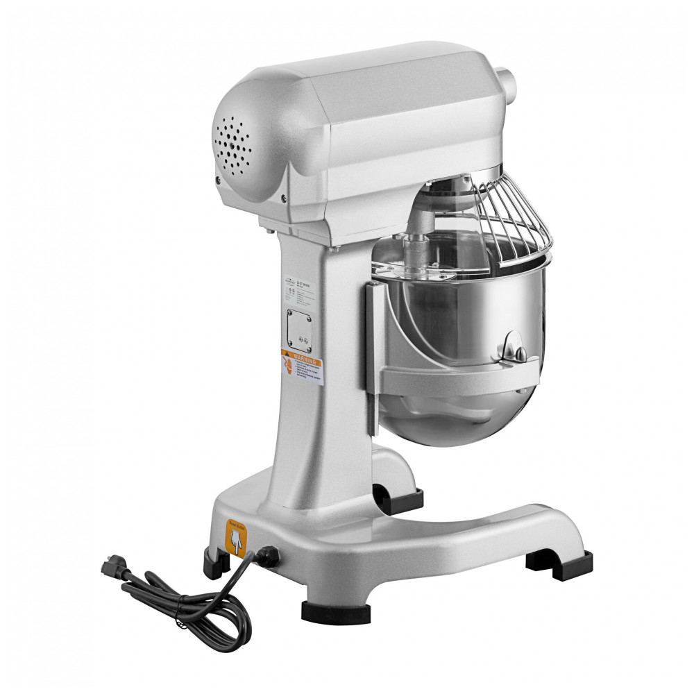 Potente batedeira planetária com motor de 3 velocidades e transmissão por engrenagens, projetada para resistir ao uso diário. Possui uma durável tigela de aço inoxidável de 9,46 Litros com protetor de arame para segurança adicional. Inclui batedor de arame, raquete plana e gancho para massas. Fácil de usar, com botões simples liga/desliga e elevação manual da tigela. Ideal para restaurantes, delicatessens ou cafeterias, esta batedeira planetária, que requer uma conexão elétrica de 110V, possui um painel de controle intuitivo que facilita a operação segura por qualquer funcionário. Possui um motor potente de 3 velocidades e 1 hp com transmissão por engrenagens para garantir velocidades de mistura consistentes mesmo com a tigela cheia. Esta batedeira vem totalmente equipada com uma tigela de mistura de aço inoxidável e batedor de arame que durarão mais do que os fornecidos com alguns outros modelos. Além disso, um resistente gancho para massas e raquete plana acompanham esta batedeira, permitindo a preparação de uma grande variedade de receitas com um único aparelho. O gancho para massas é mais adequado para uma baixa RPM de 142, a raquete plana para uma RPM média de 282 e o batedor de arame para uma RPM alta de 508. Uma elevação ergonômica da tigela facilita a tarefa de carregar e descarregar a tigela, e uma base resistente com pés antiderrapantes mantém a batedeira no lugar o tempo todo. Além disso, o protetor de segurança interrompe imediatamente o motor se alguém tentar levantá-lo enquanto a máquina estiver em funcionamento.