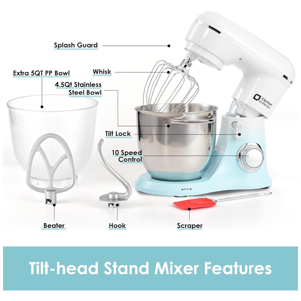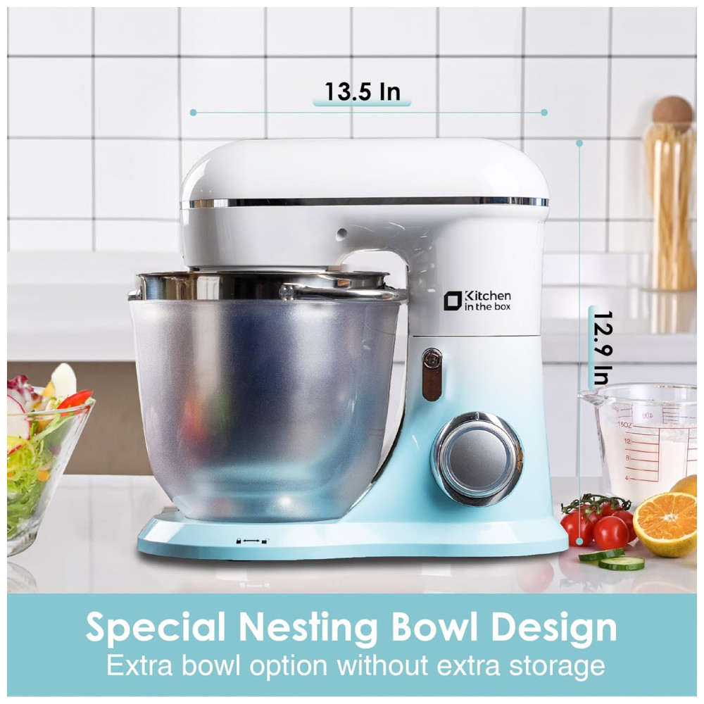 A Batedeira Kitchen in the box é perfeita para suas necessidades de mistura e cozimento. Com duas tigelas de 4,5Litros em aço inoxidável e 5Litros em plástico seguro para alimentos, oferece opções versáteis. Com 10 velocidades, é ideal para massa de pão, cremes, claras em neve e muito mais. Seus acessórios aprimorados, como gancho para massa de alumínio e batedor plano, são resistentes e fáceis de limpar, sendo todos aptos para máquina de lavar louça. Além disso, seu design elegante e opções de cores fazem dela não só funcional, mas também um item decorativo para a cozinha. Ideal para presentear, a Batedeira Kitchen in the box é a escolha certa para facilitar suas tarefas na cozinha.